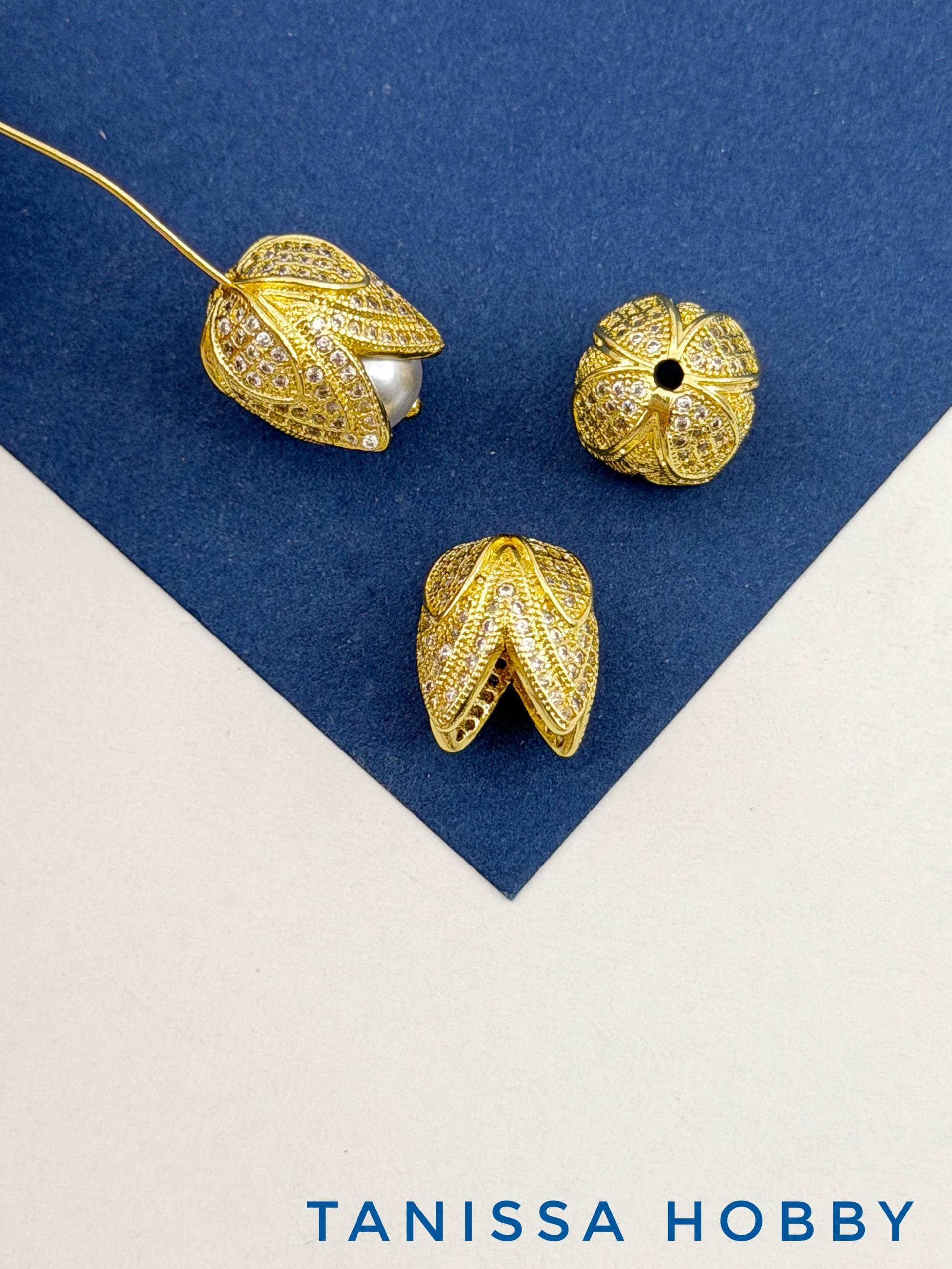 Бейл разъемный 8х7мм для вклейки, цветок 14мм, позолота, В408