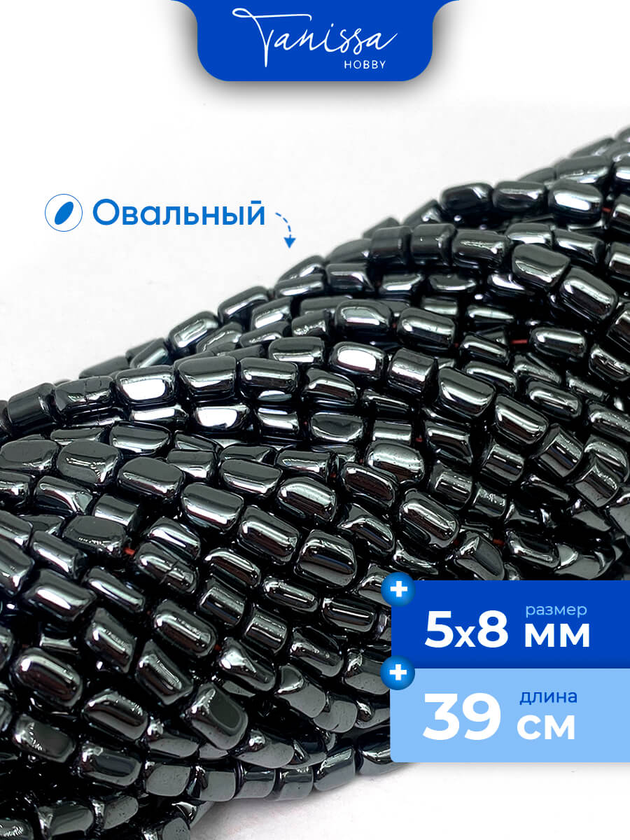 Стразовый шнур, черный JET HEMATITE, 4,5мм, полый, 10СМ, Л97