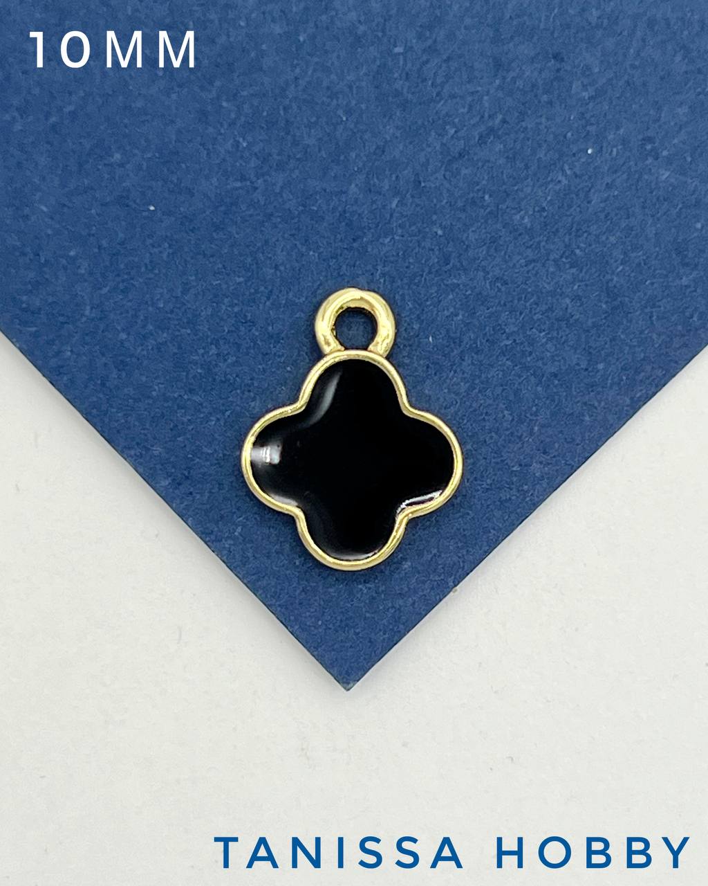 Подвеска клевер 10мм, черная эмаль, позолота, А435