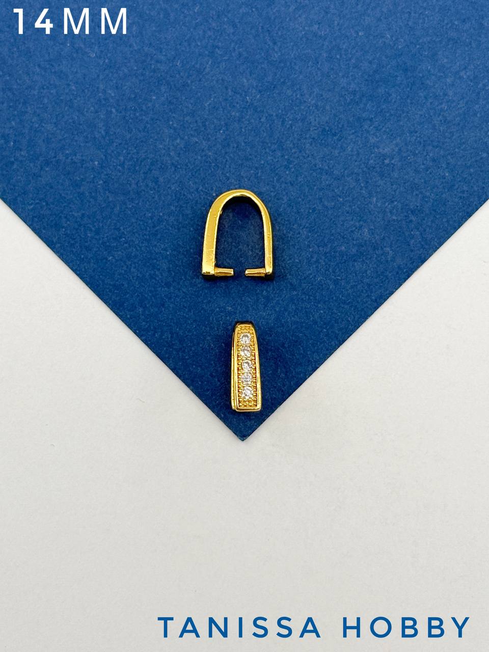 Бейл зажимной 14мм с фианитами, позолота, К534