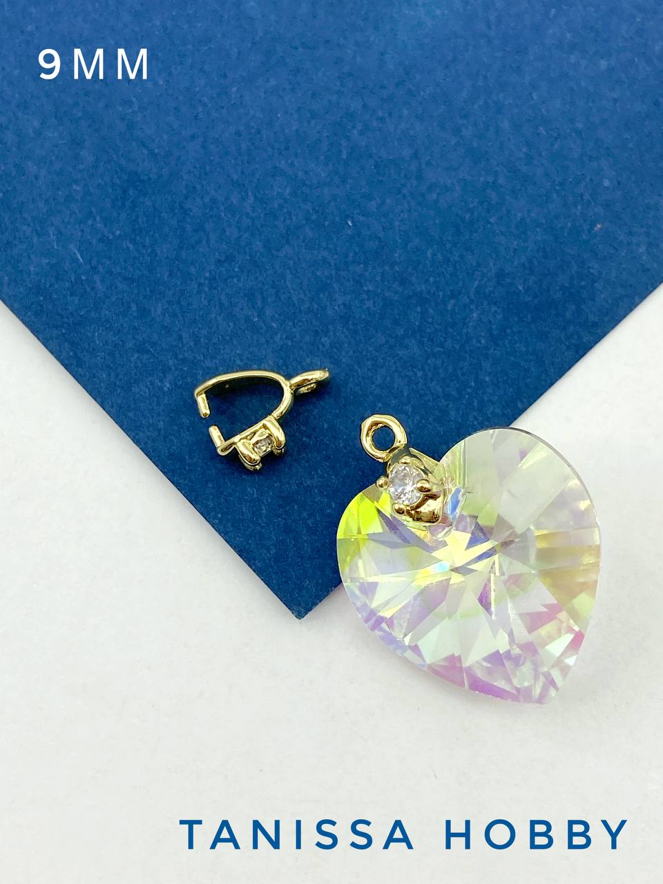 Бейл зажимной с фианитом 9мм, позолота, В208