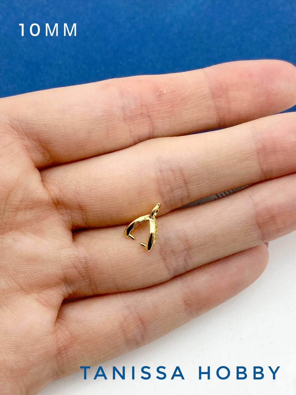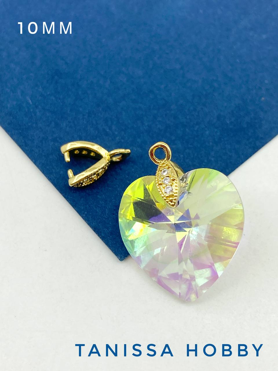 Бейл зажимной с фианитами 10мм, позолота, В211