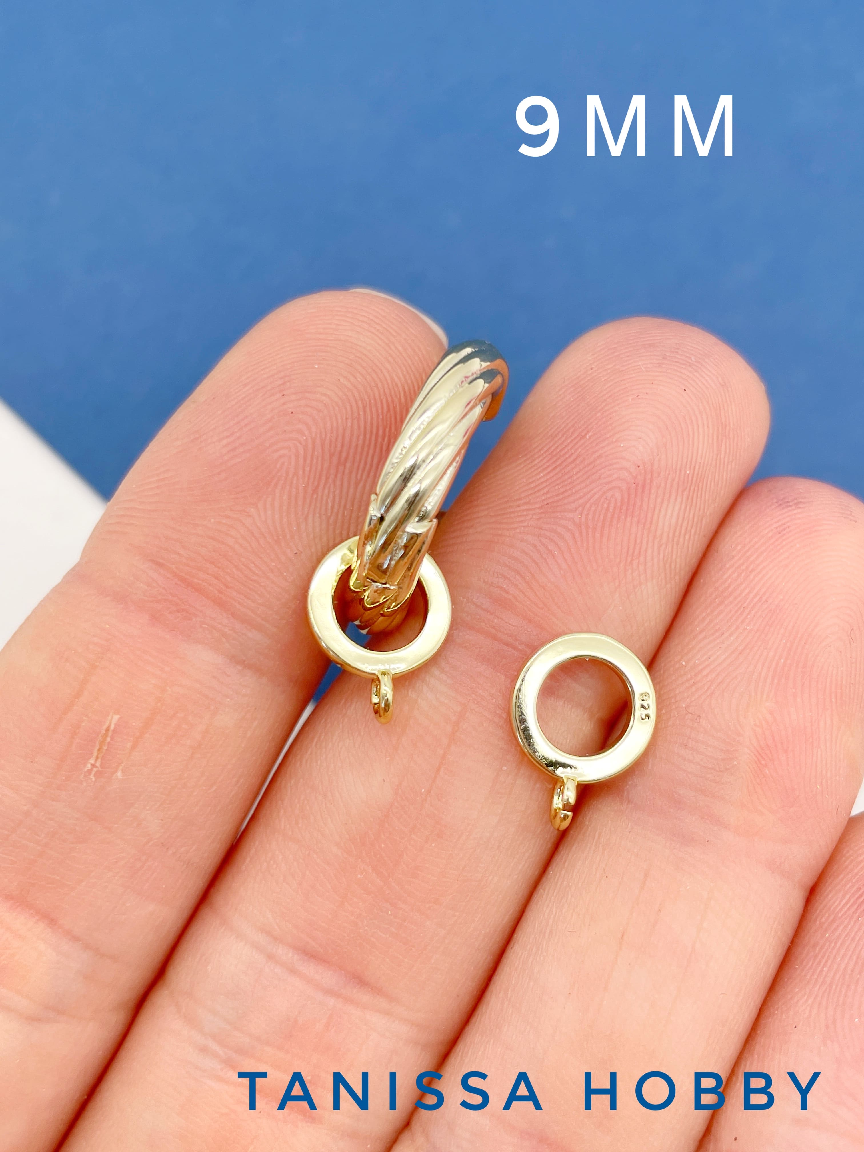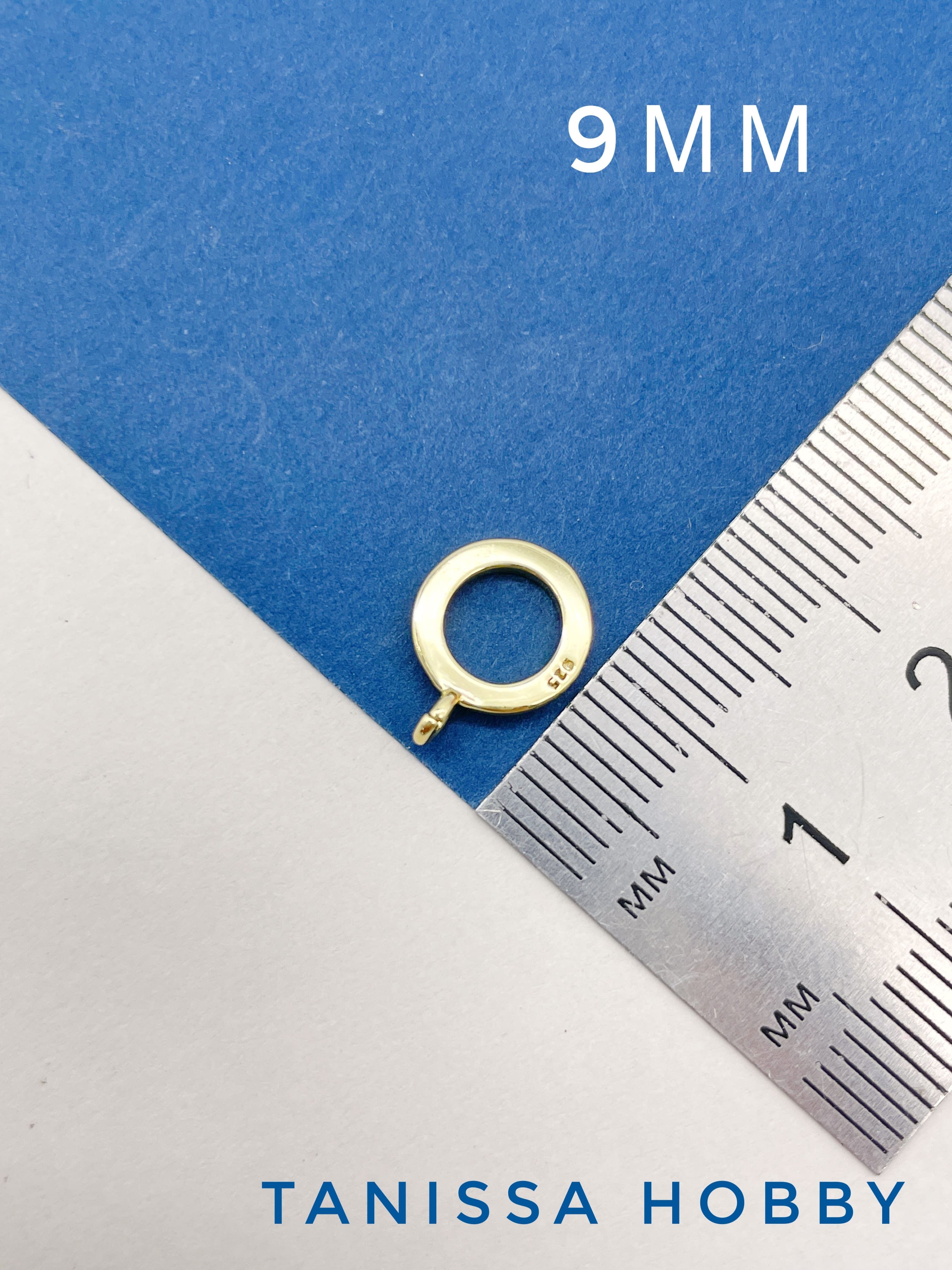 Диаметр кольца 9мм. Маленькое ушко 2мм, разъёмное.