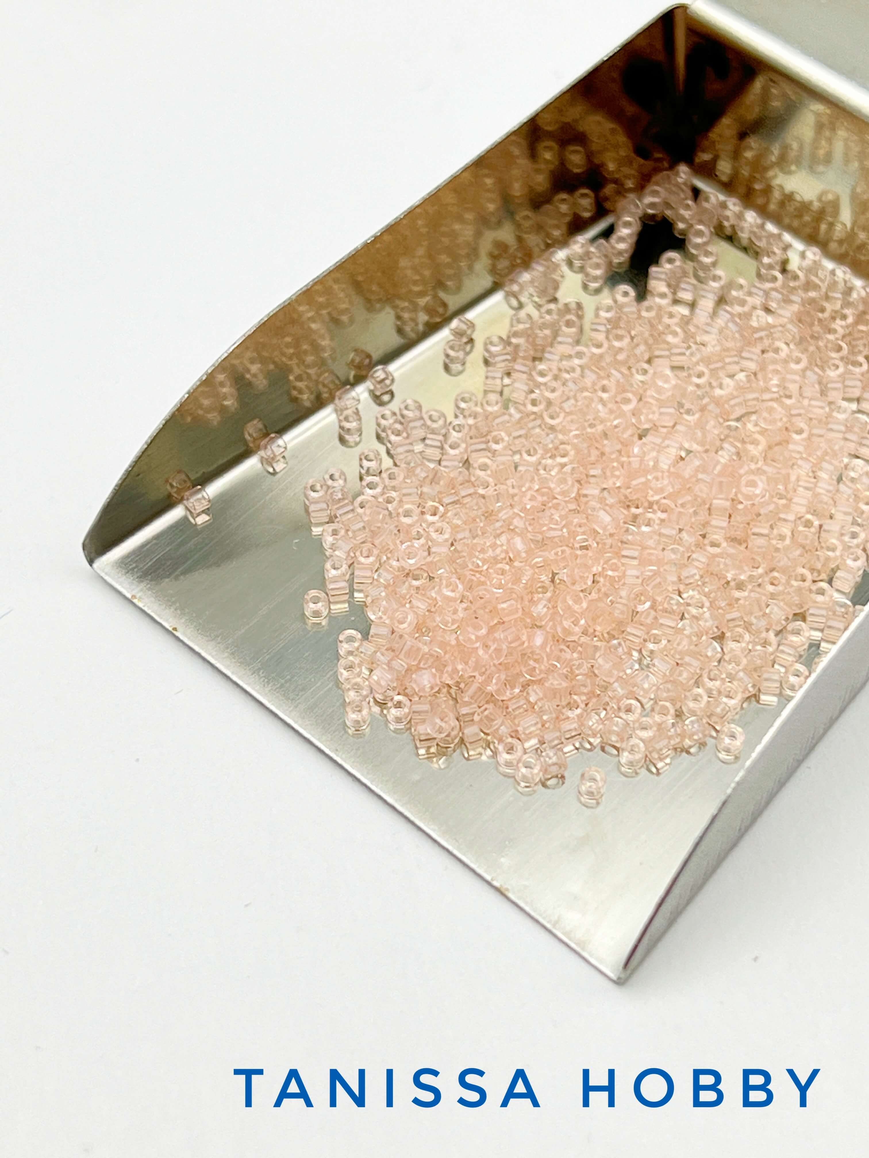 Delica – цилиндрический бисер компании MIYUKI. Бисер имеет сглаженные края, которые не режут нить , а также большое отверстие, что упрощает работу с иглой.