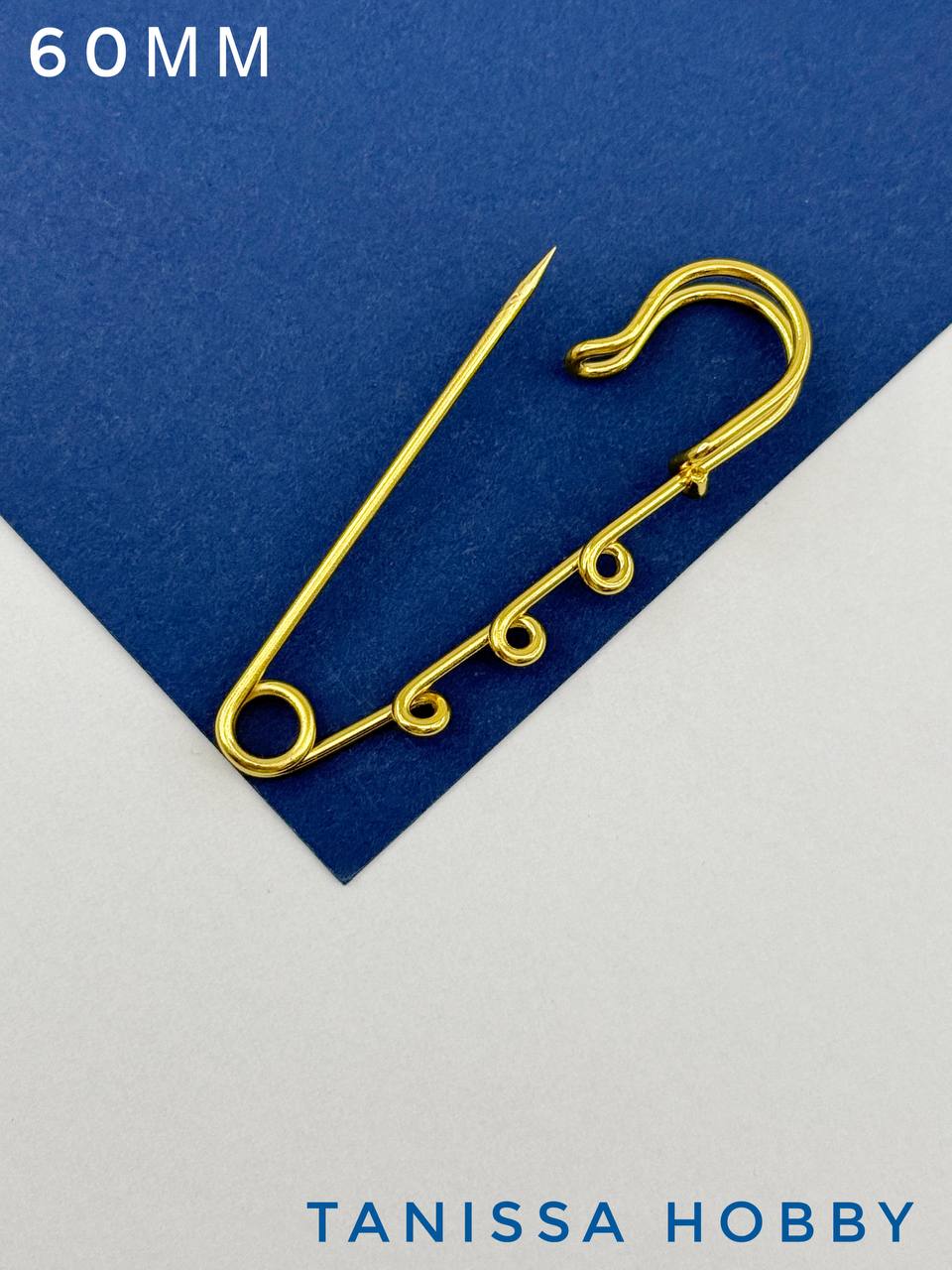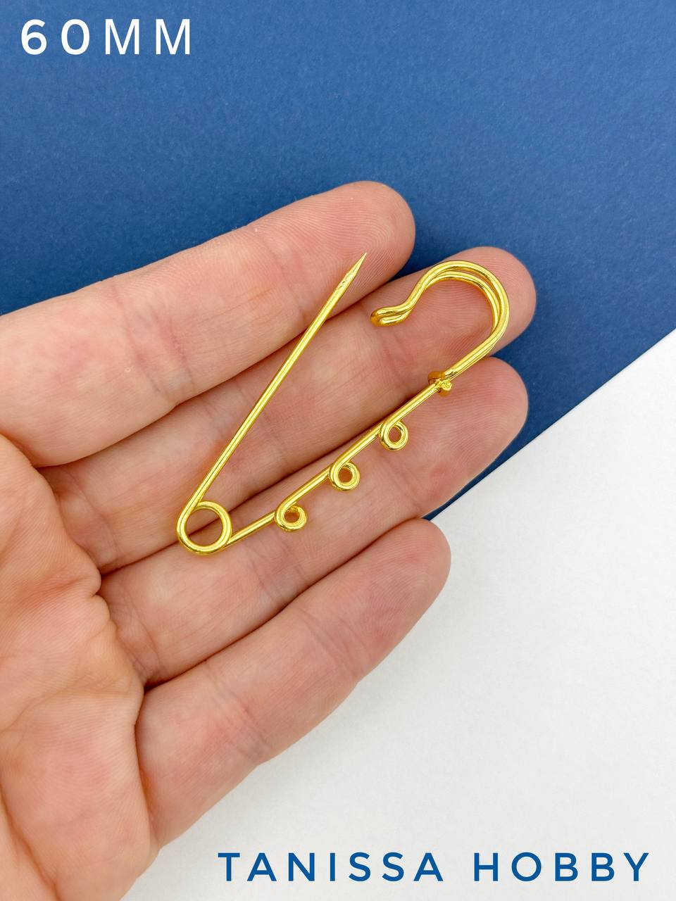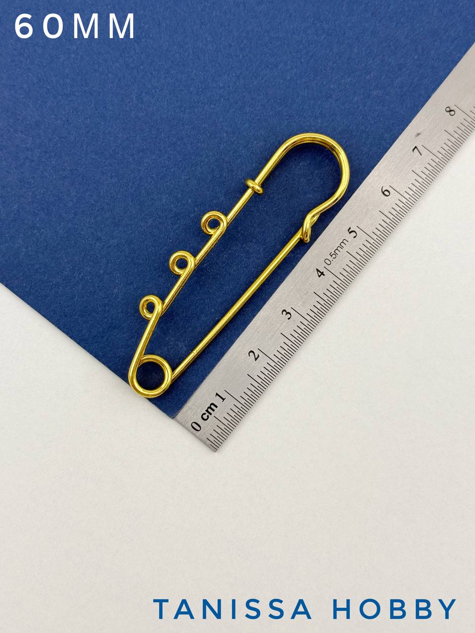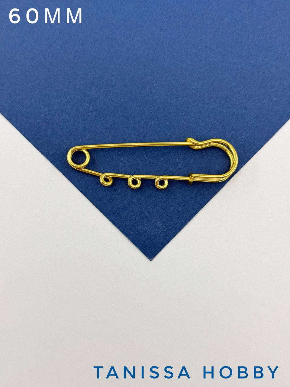 Брошь булавка для подвесок 60мм, 3 петельки, позолота, Л34