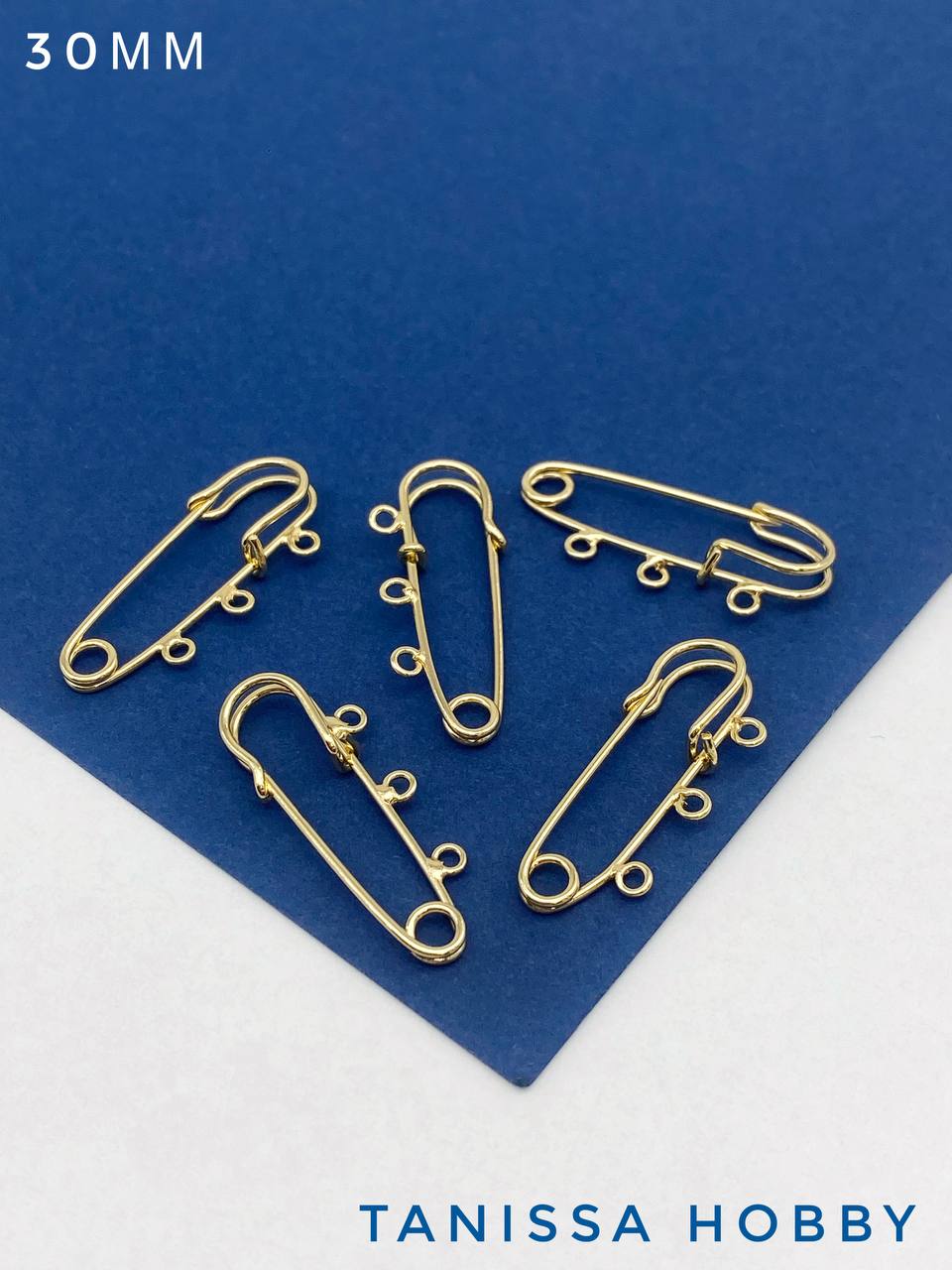 ОПТ Брошь булавка 30мм, 3 петельки, позолота, 5 ШТУК, ОПТ057