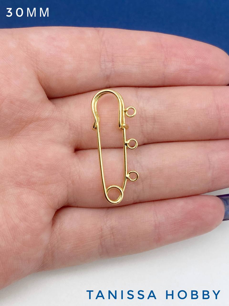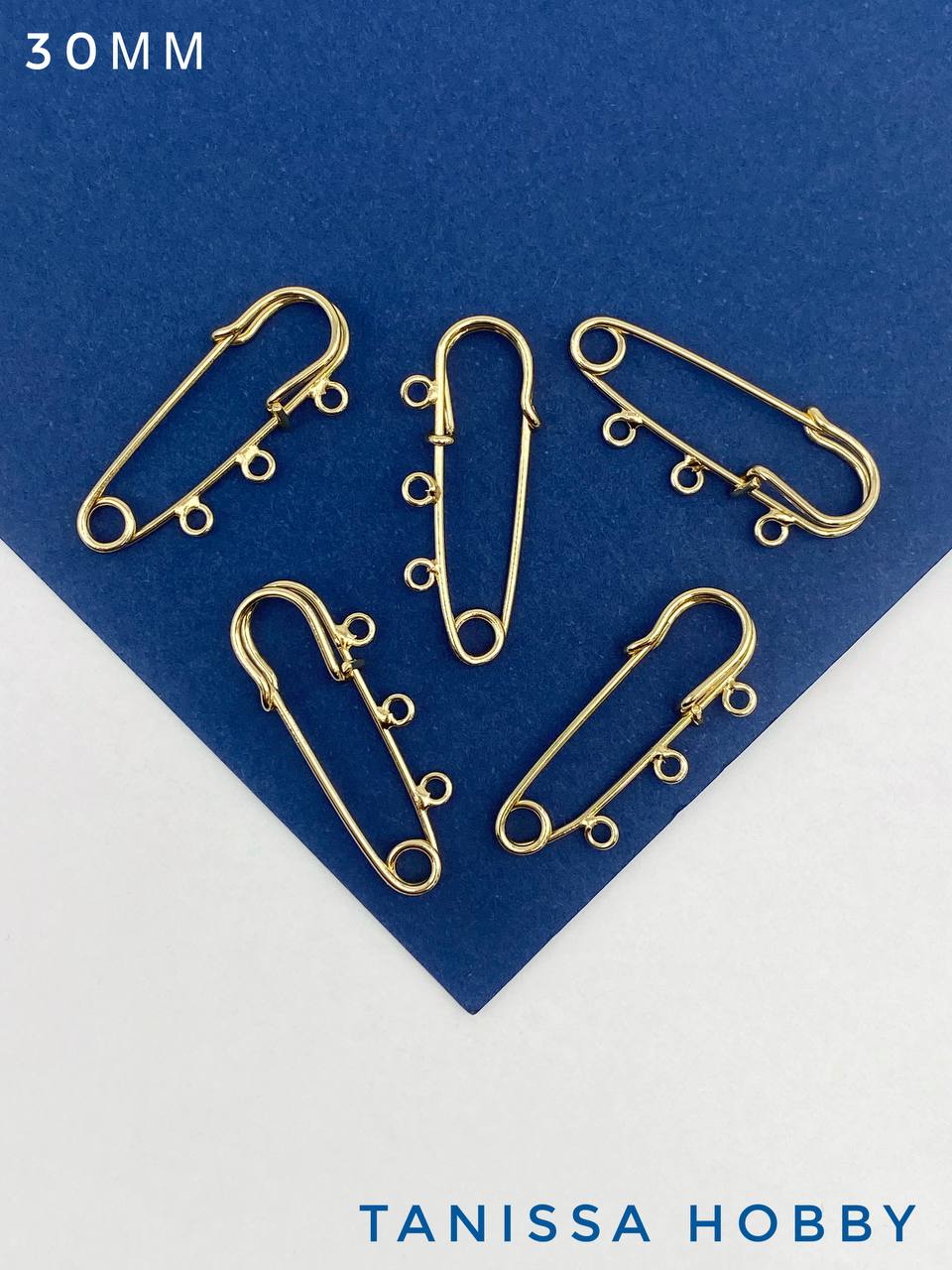 ОПТ Брошь булавка 30мм, 3 петельки, позолота, 5 ШТУК, ОПТ057