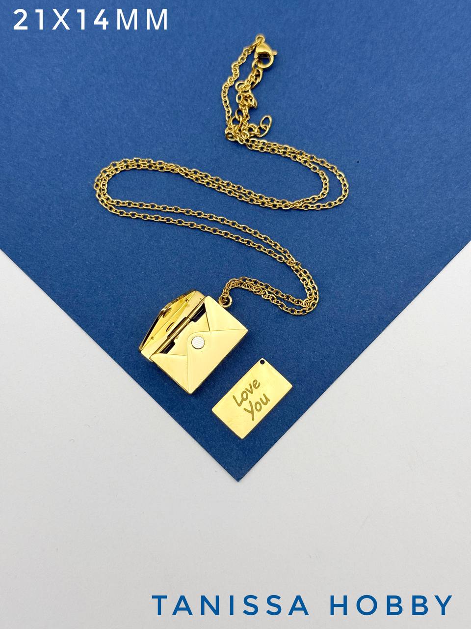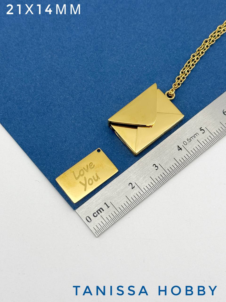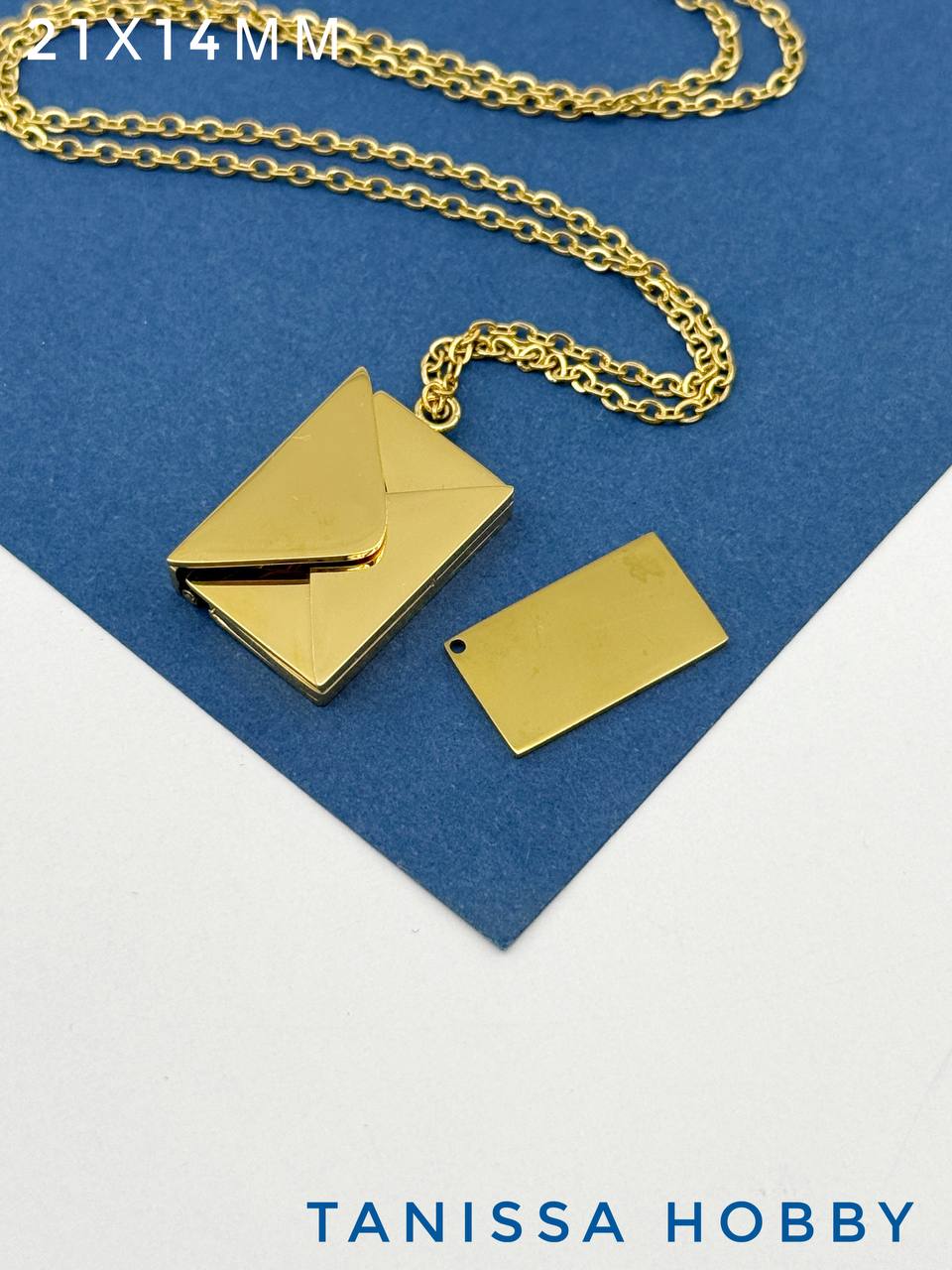 Подвеска конверт открывающийся для гравировки, цепочка 45+5см, позолота, У083