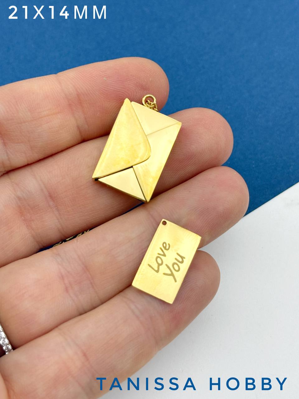 -Подвеска конверт открывающийся для гравировки, цепочка 45+5см, позолота, У083