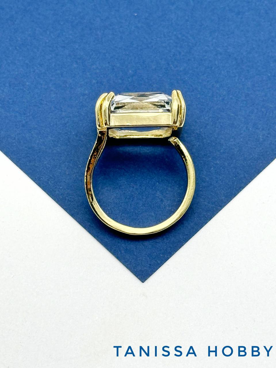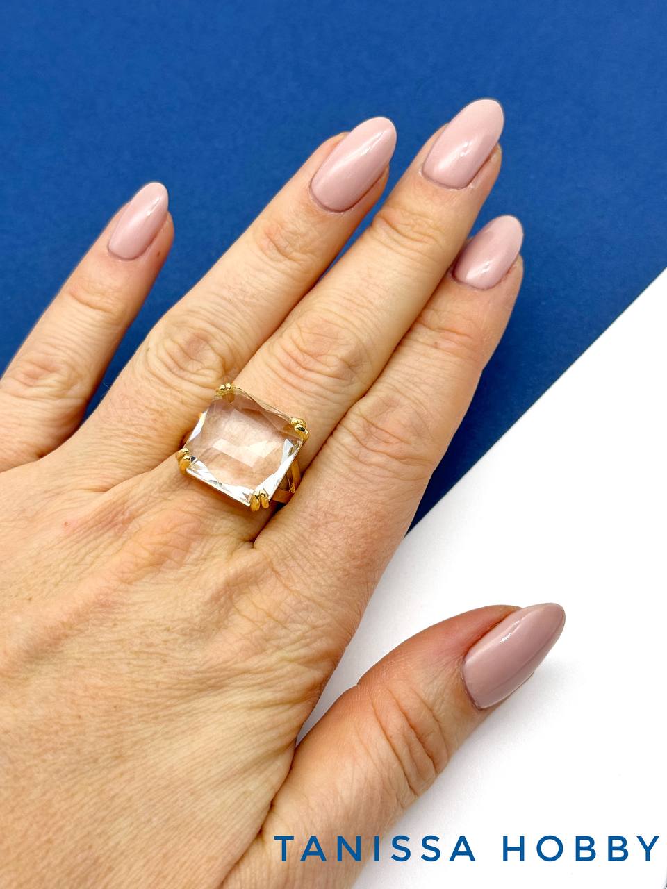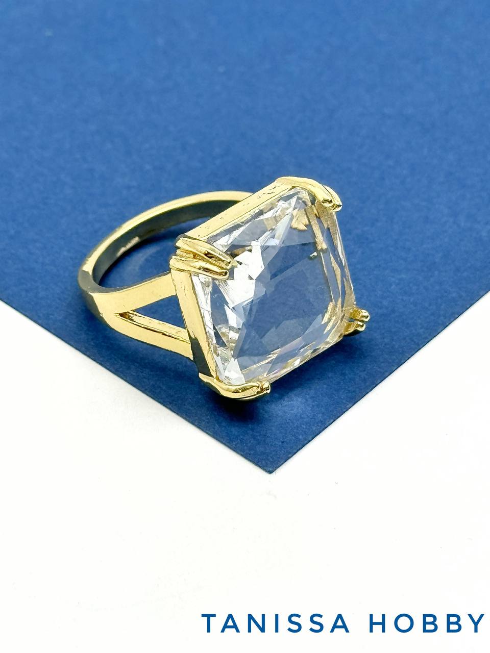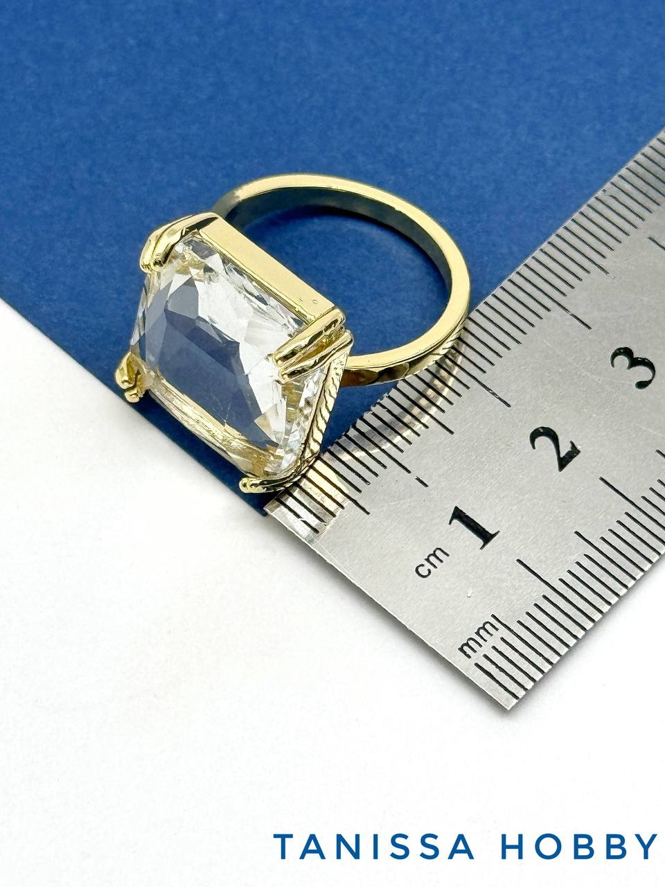 -Кольцо безразмерное, кристалл квадрат 18мм, позолота, У065