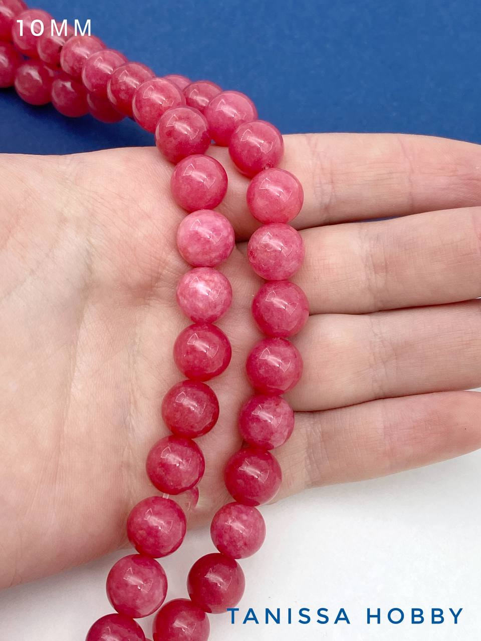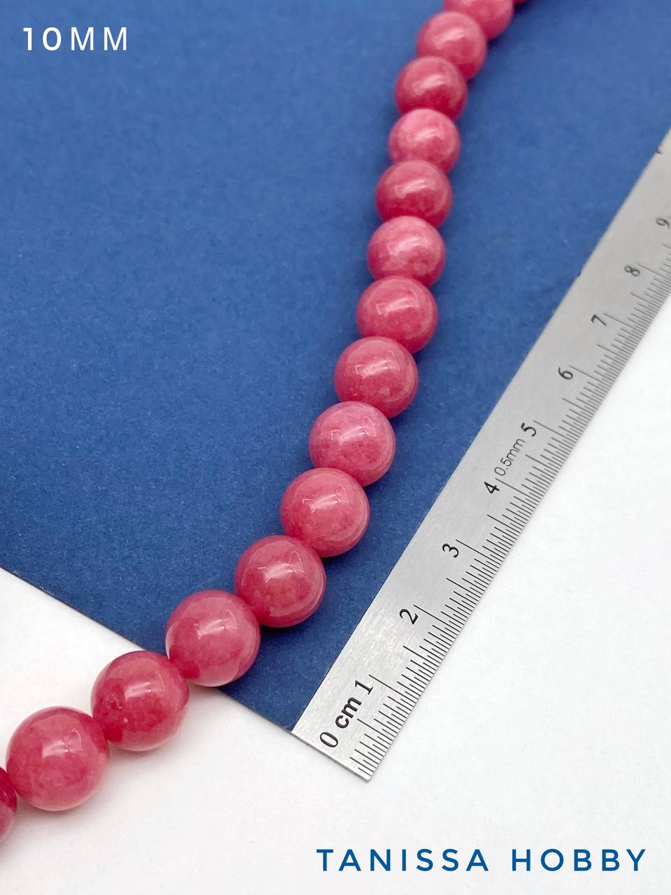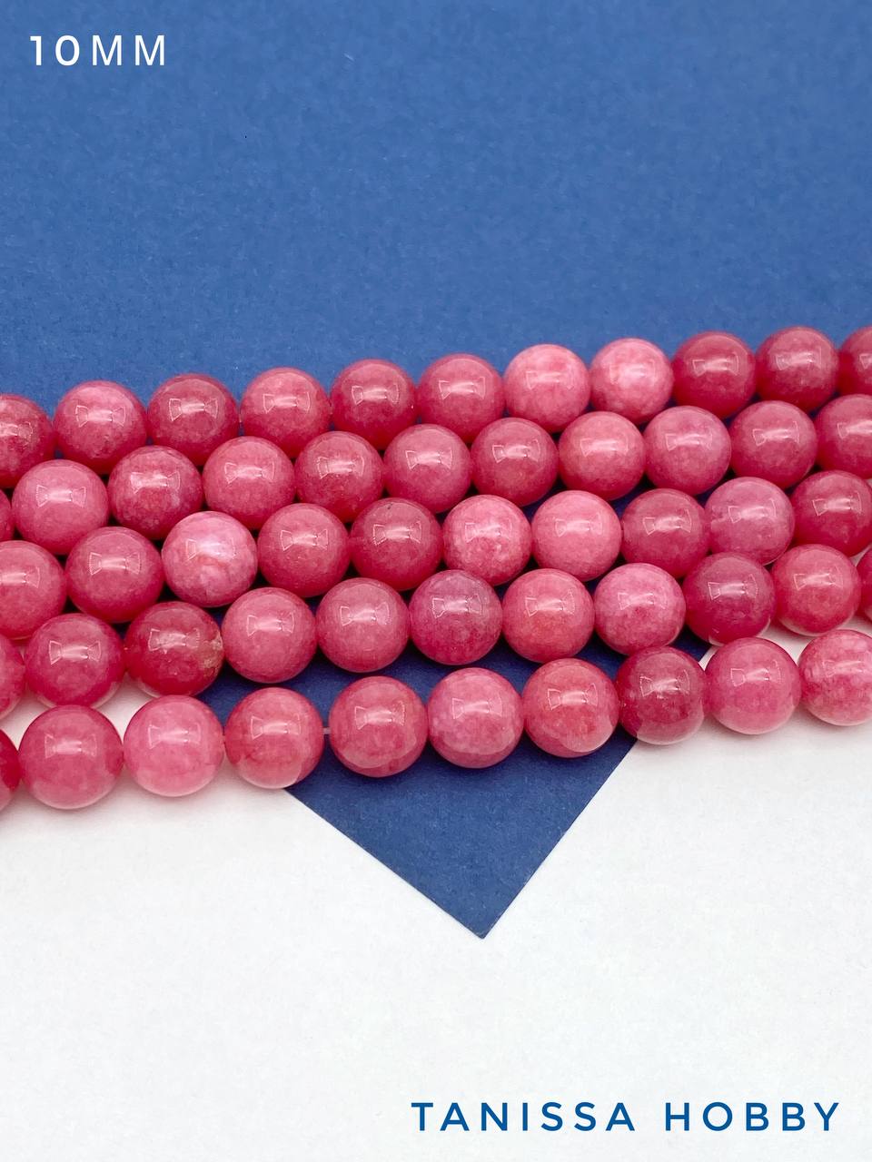 Халцедон малиновый розовый, бусины круглые 10мм, нить, Б264