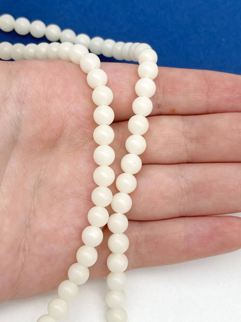 Орех тагуа бусины круглые, молочный, 6мм, 1/2 нить, Б343