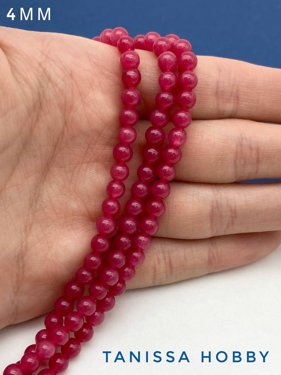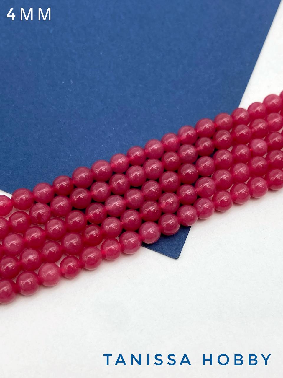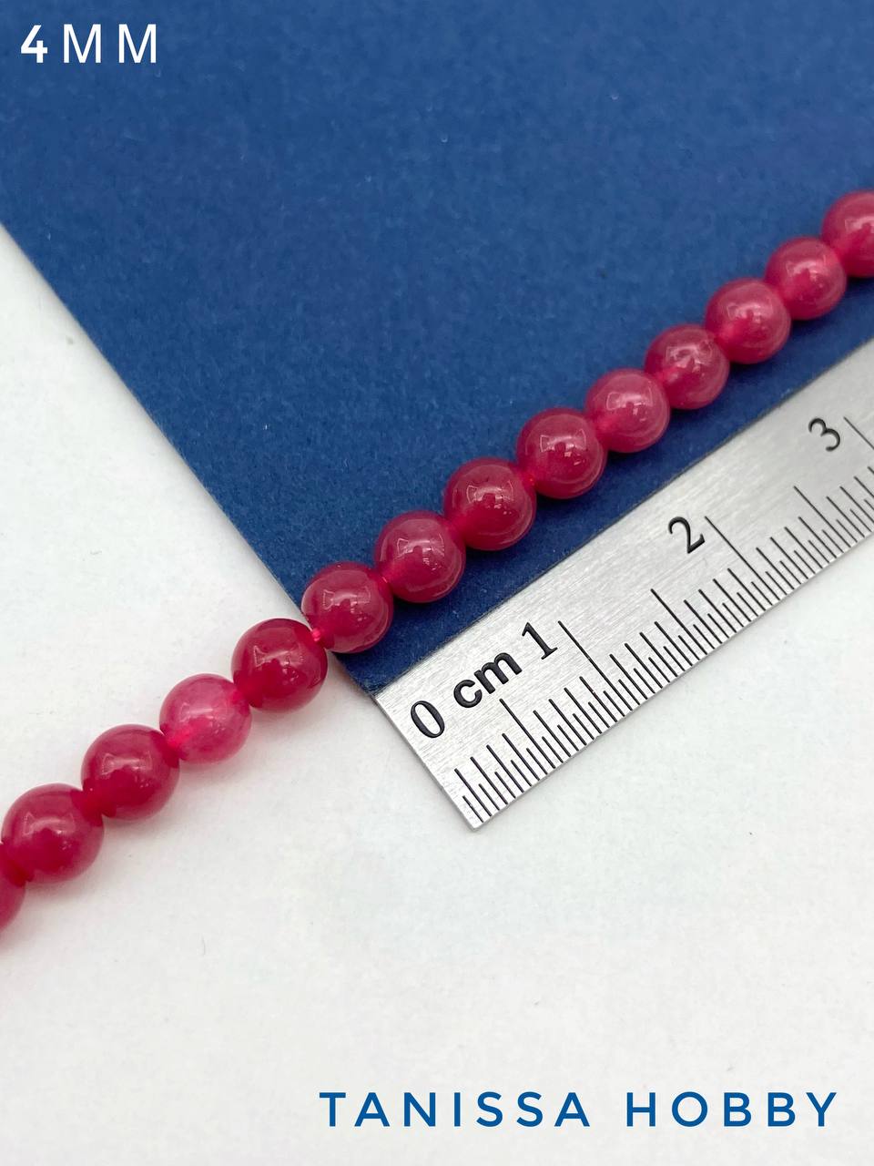 Халцедон малиновый розовый, бусины круглые 4мм, нить, Б265