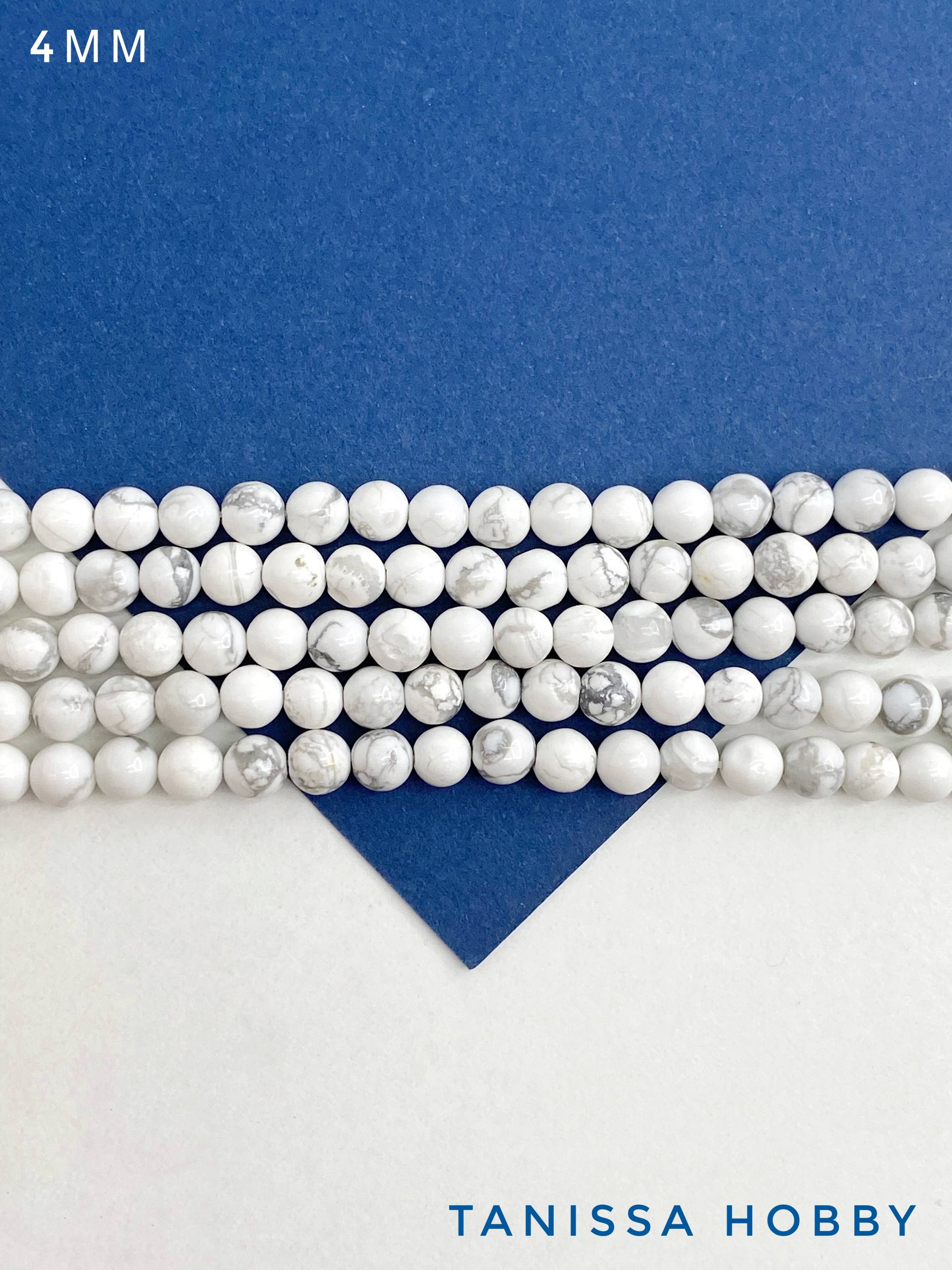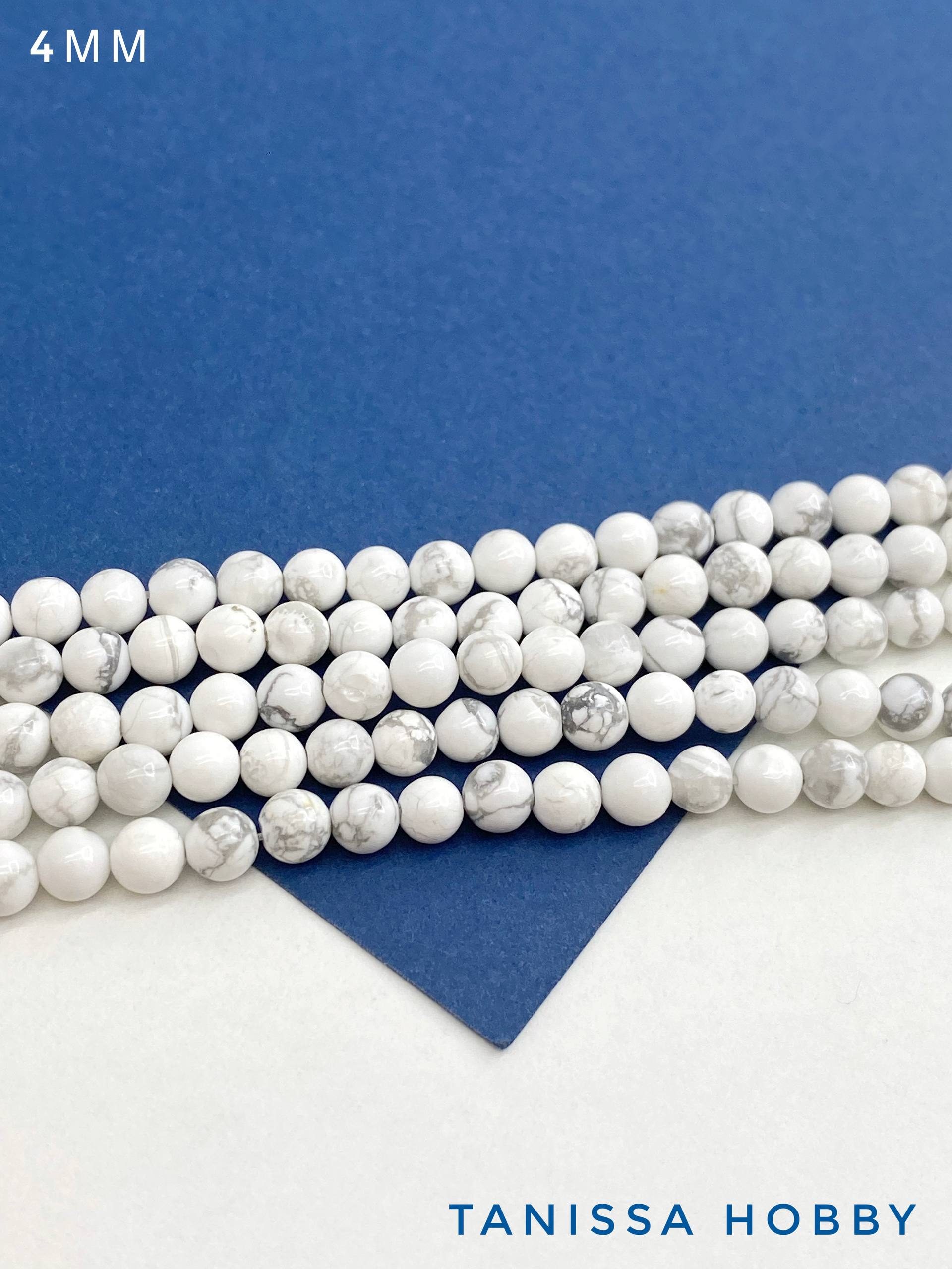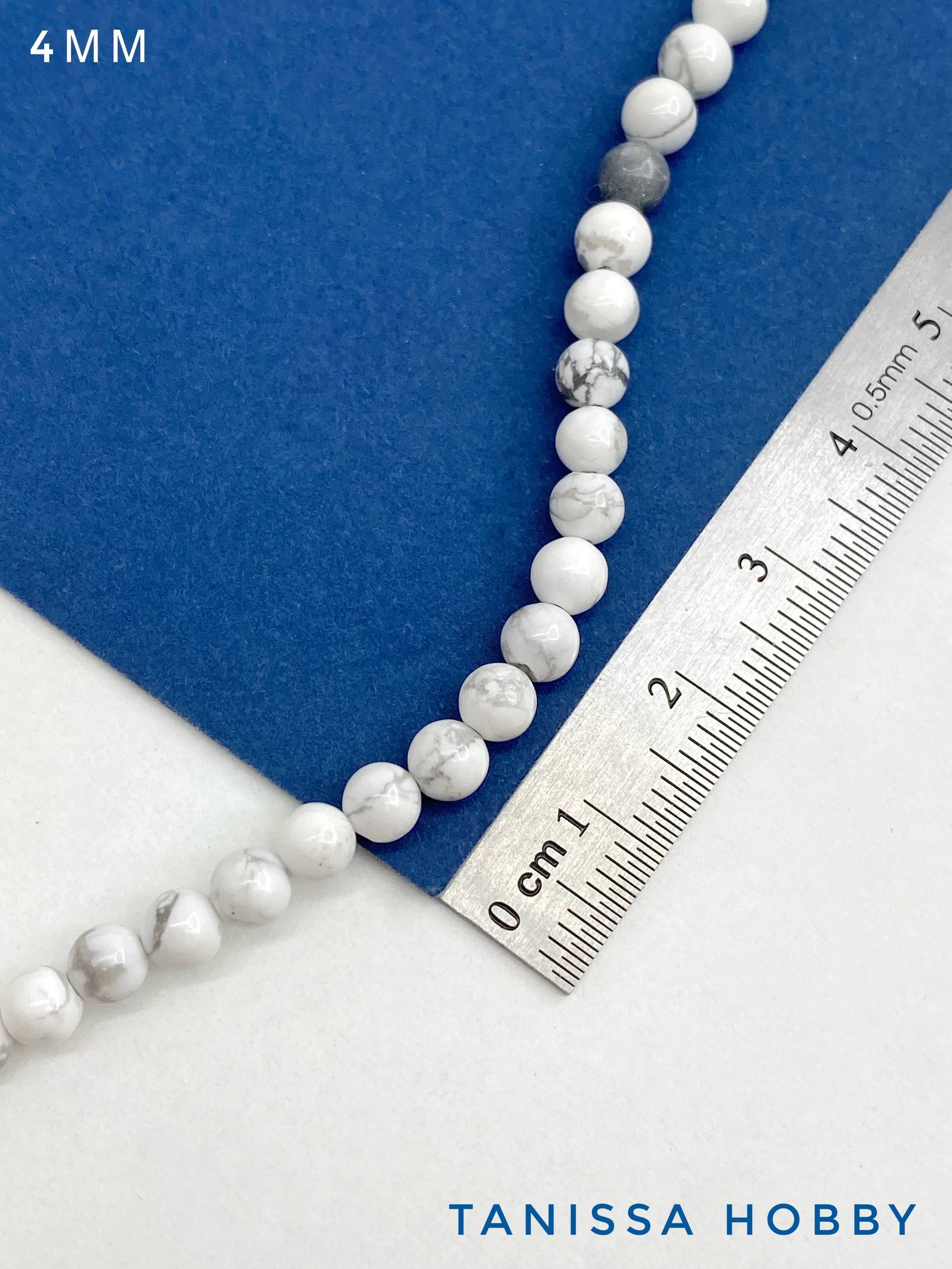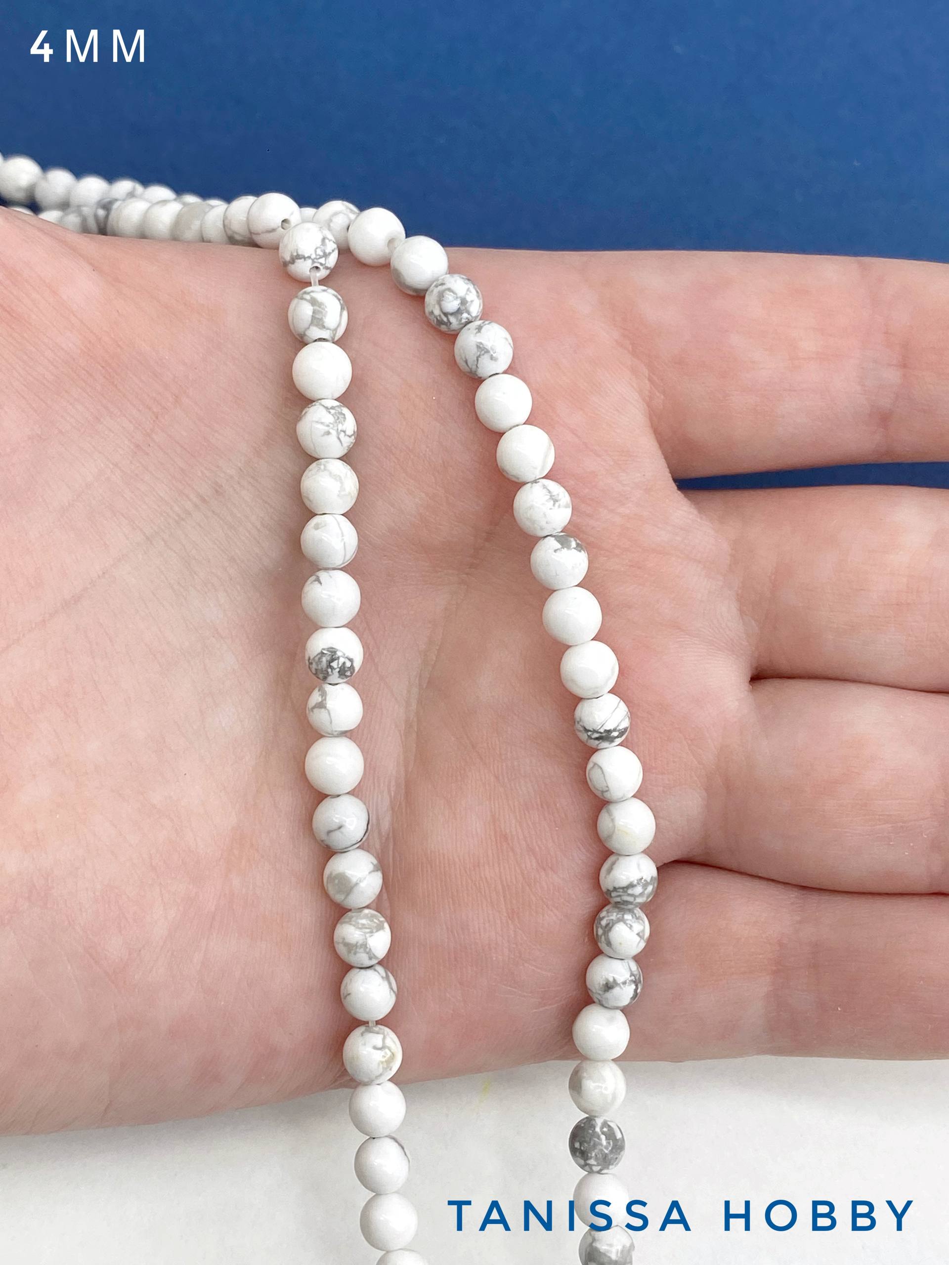 Говлит белый натуральный, бусины круглые 4мм, нить, Б266