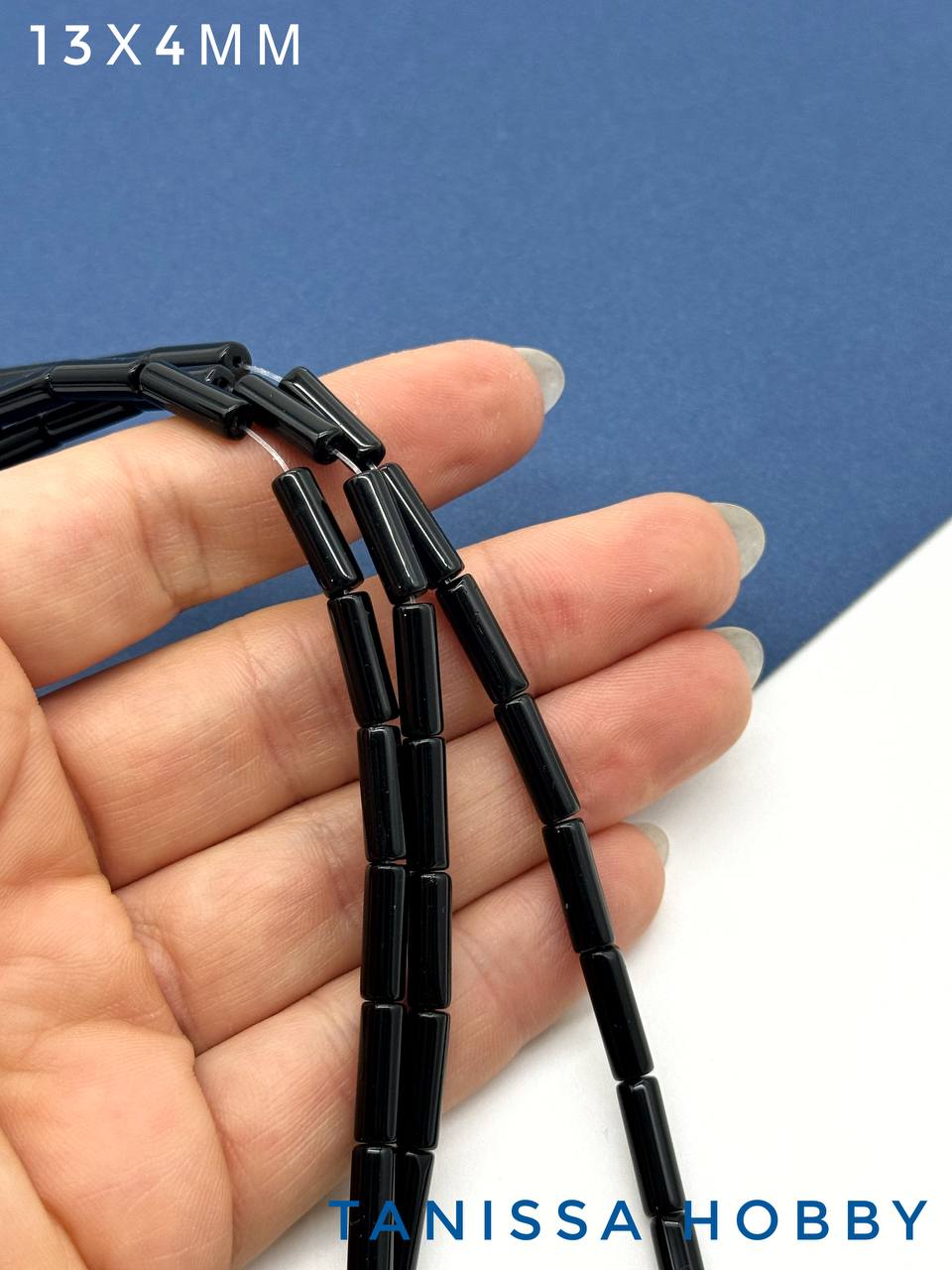 Черный агат трубочки бусины, 13х4мм, 1/2 нити, Б276