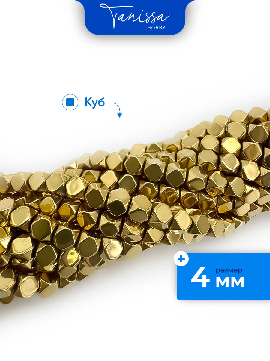 Гематин гематит квадрат 8мм, золото, 1/2 нити, ГТ052