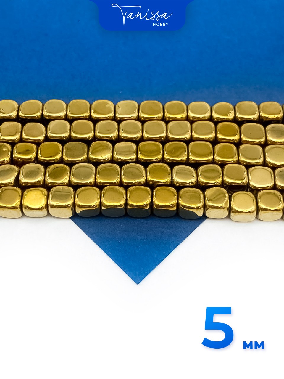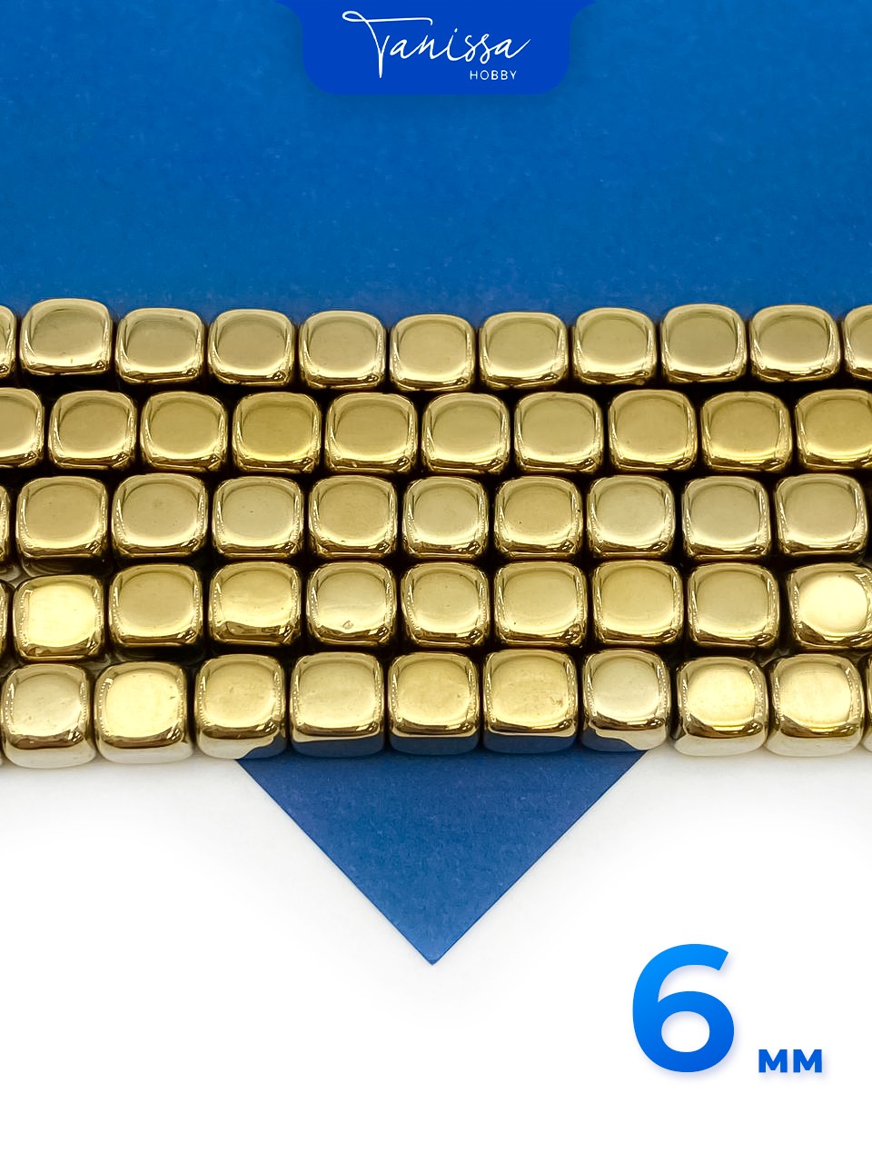 Гематин гематит бусины куб квадрат 6мм, золото, нить, ГТ100