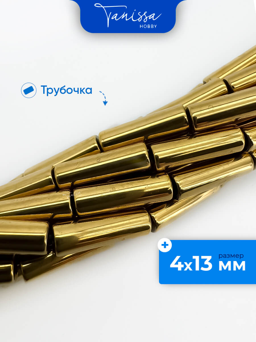 Гематин гематит бусины трубочка 4х13мм, черный, нить, ГТ082