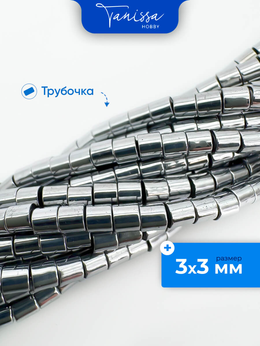 Гематин гематит трубочки, 3х3мм, 1/2 нити, ГТ055
