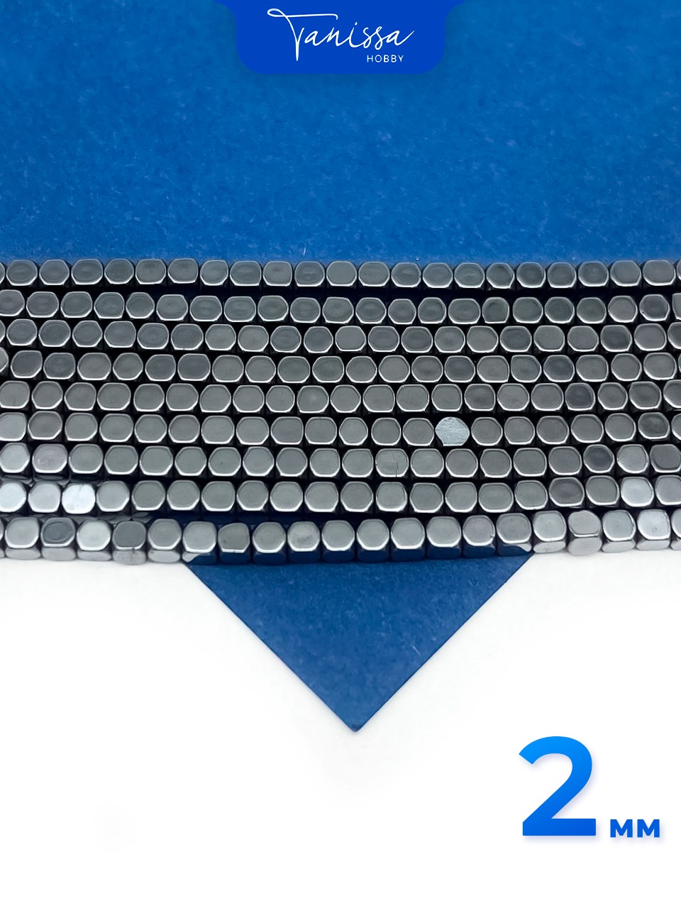 Гематин гематит бусины квадратные куб огранка круг 2мм, черный, нить, ГТ144