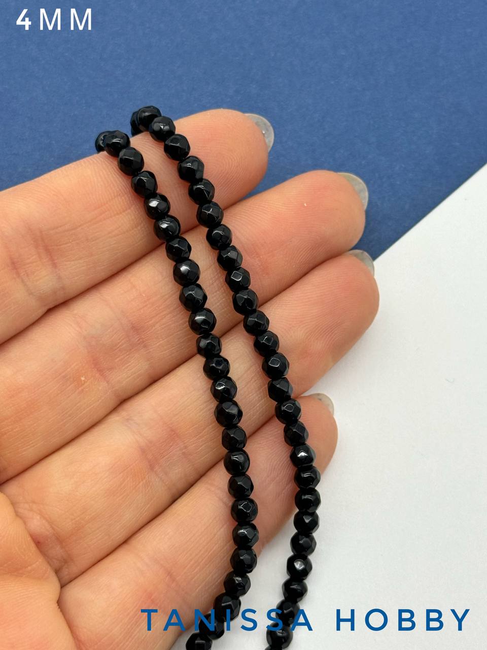 Черный агат граненый, огранка, 4мм, 1/2 нити, Б188