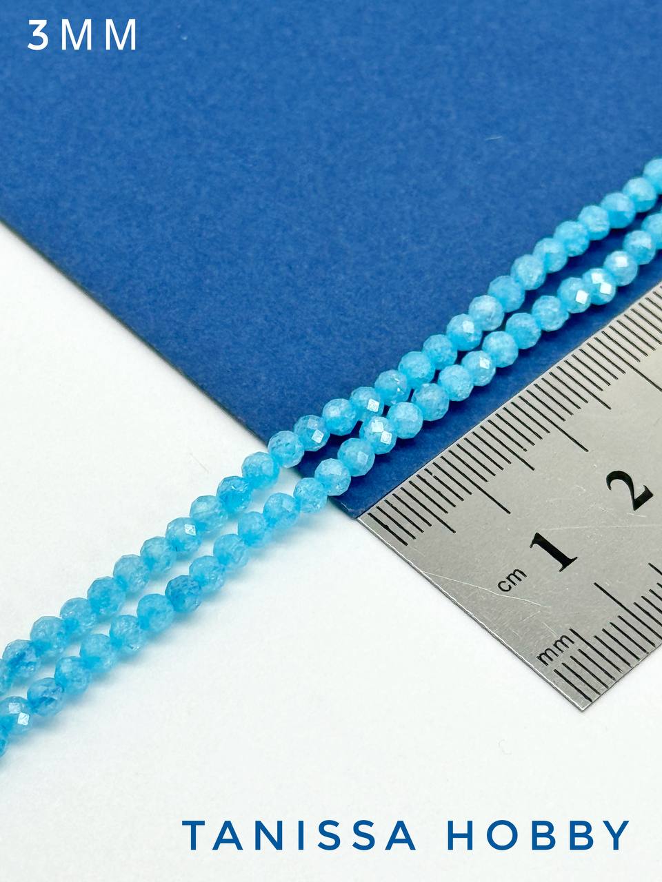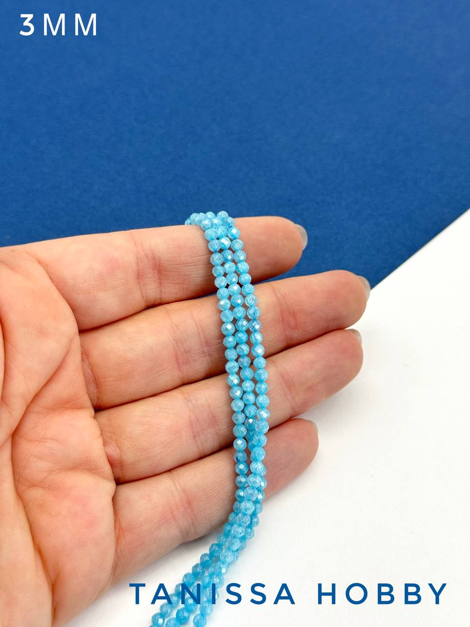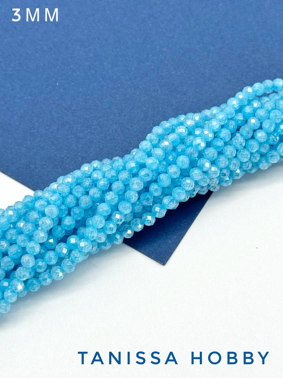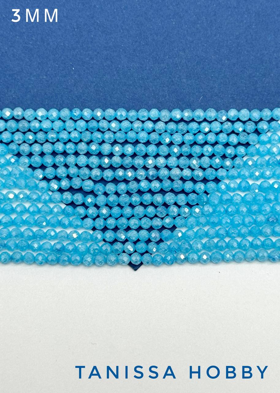 Цирконы бусины 3мм, голубой аквамарин, нить, Б051