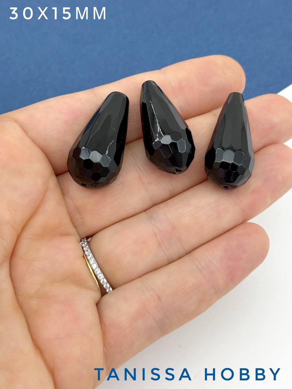 Черный агат, бусина капля огранка, 30х15мм, штука, Б138