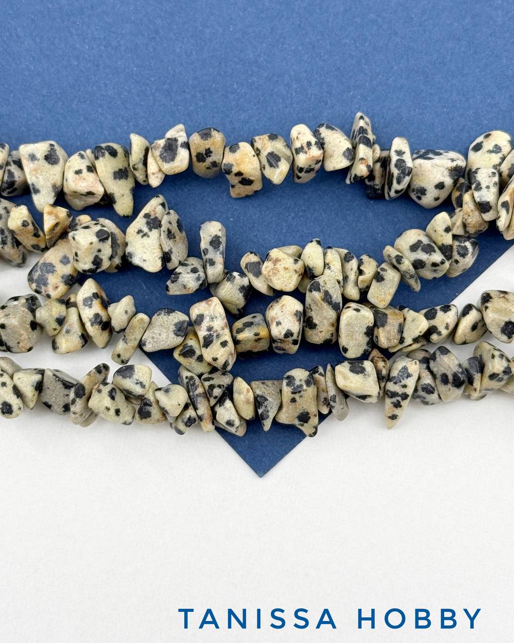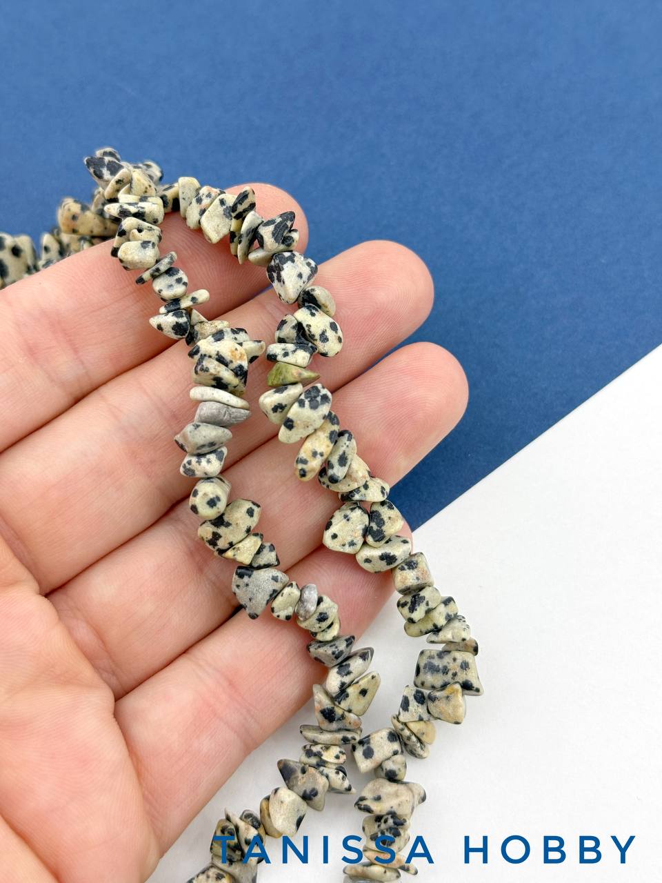 • Яшма далматин, крошка, галтовка 5-10мм, 1/2 нити (38см), Б100