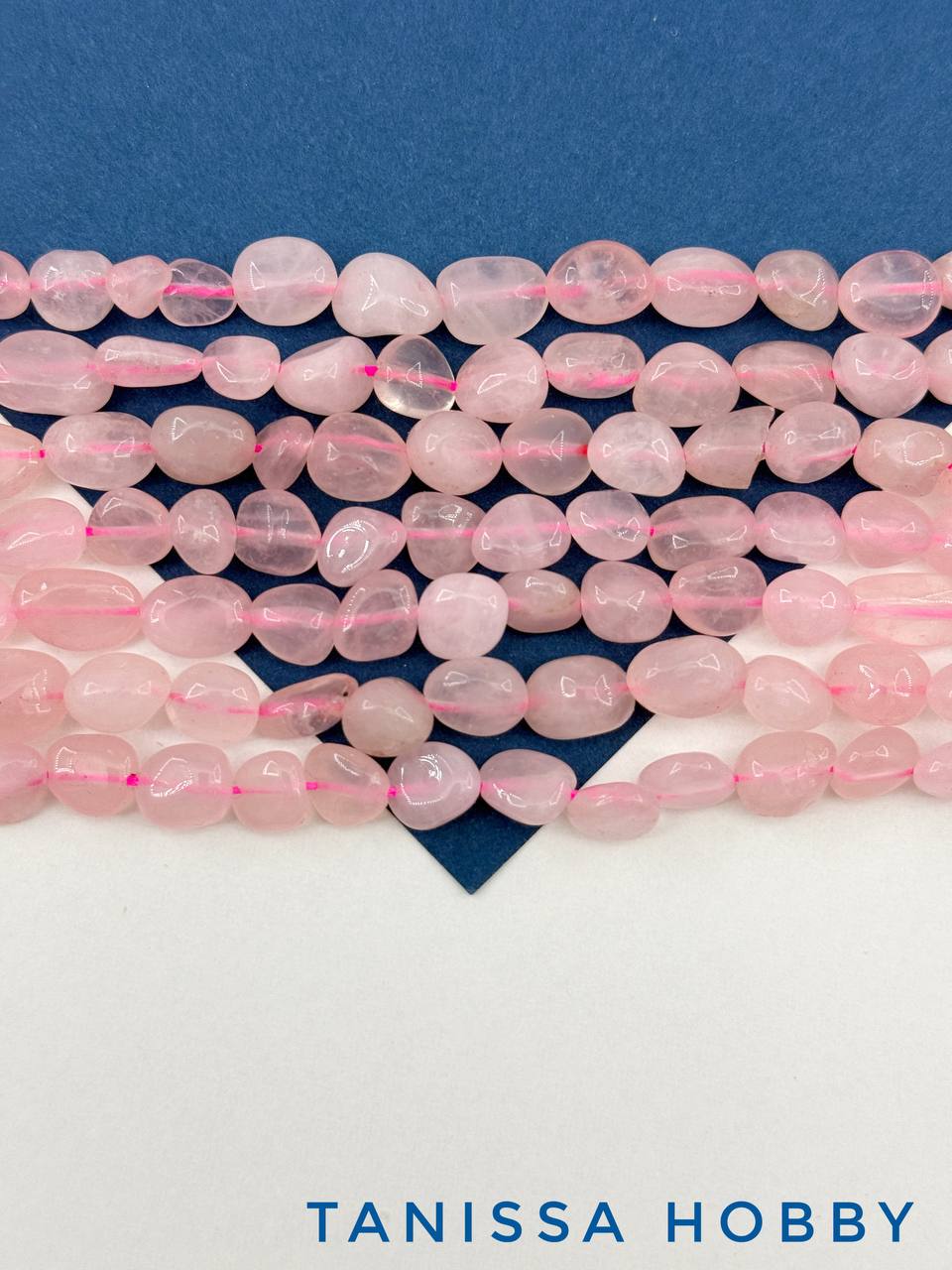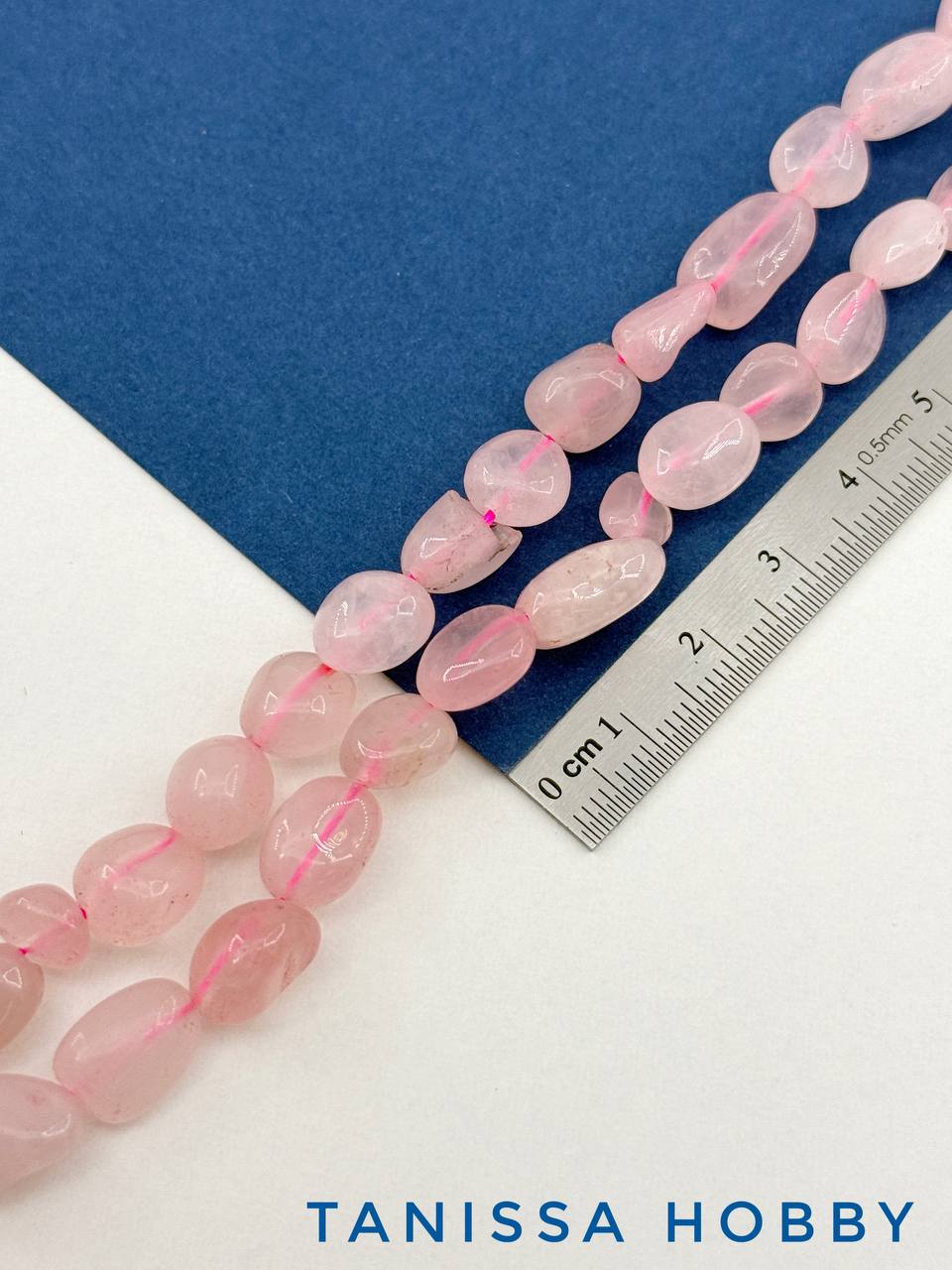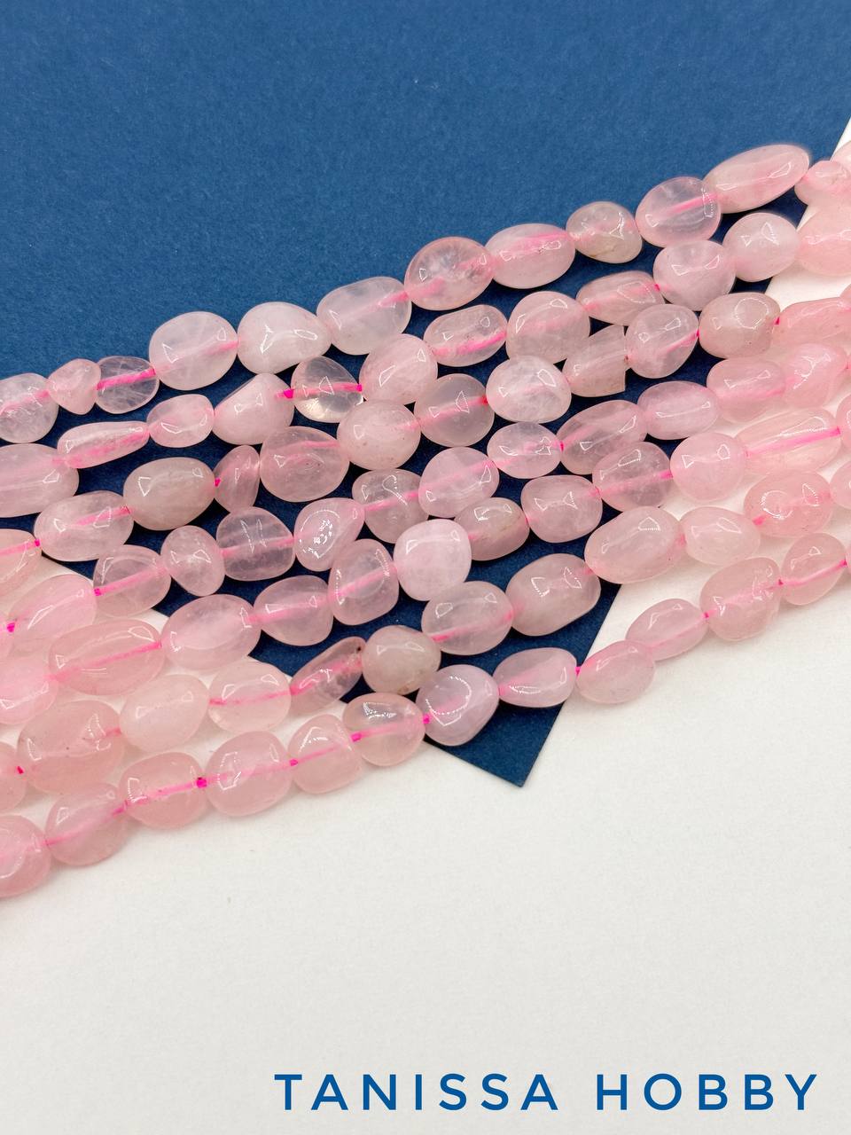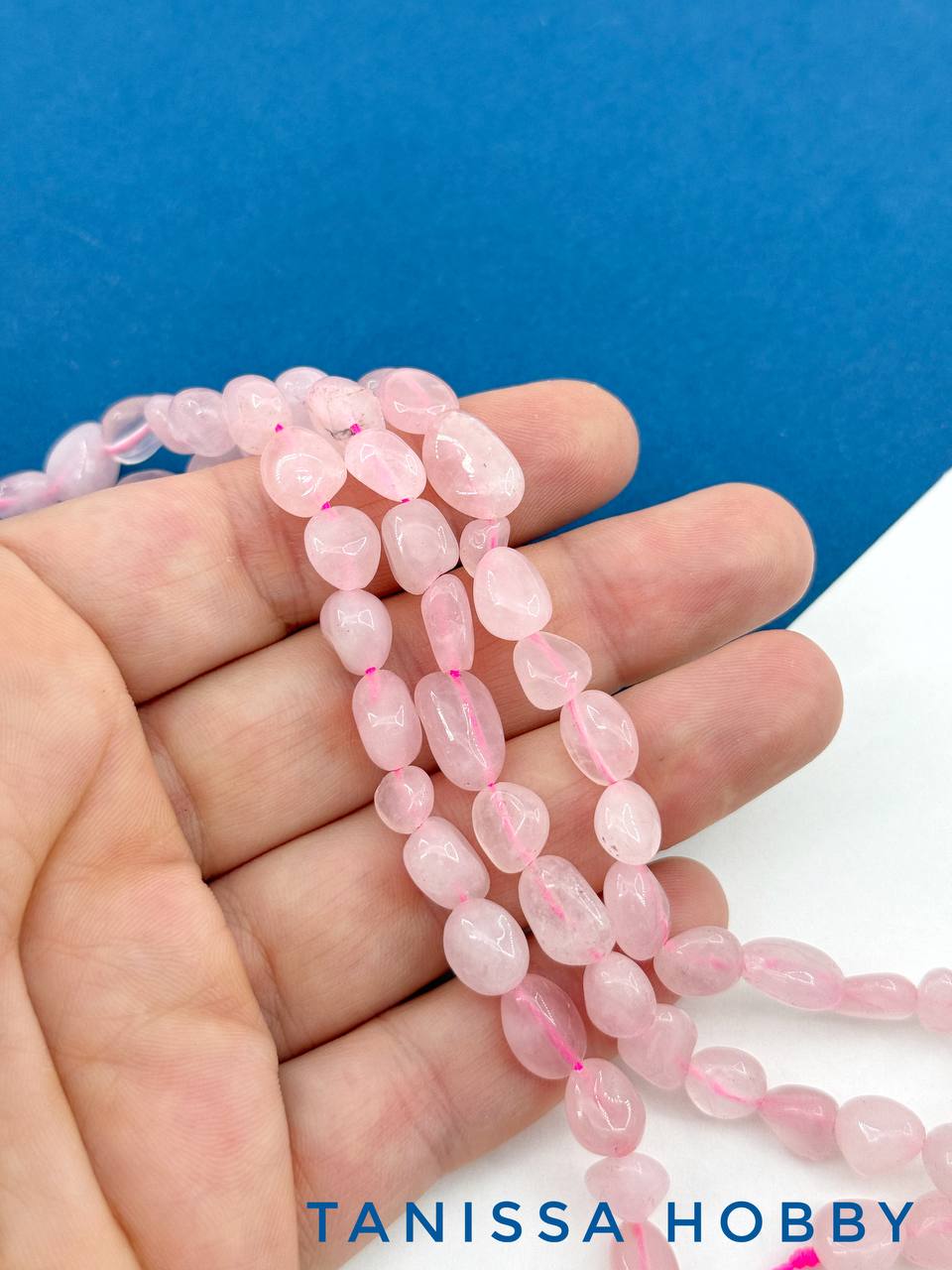 Розовый кварц бусины галтовка овал , 8-12мм, нить, Б055
