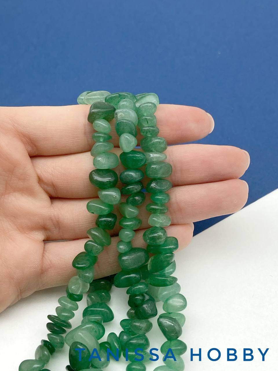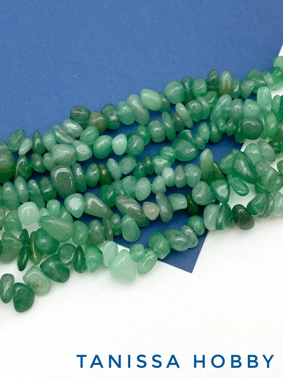 Зеленый авантюрин, крошка, галтовка 5-10мм, 1/2 нити (38см), Б093