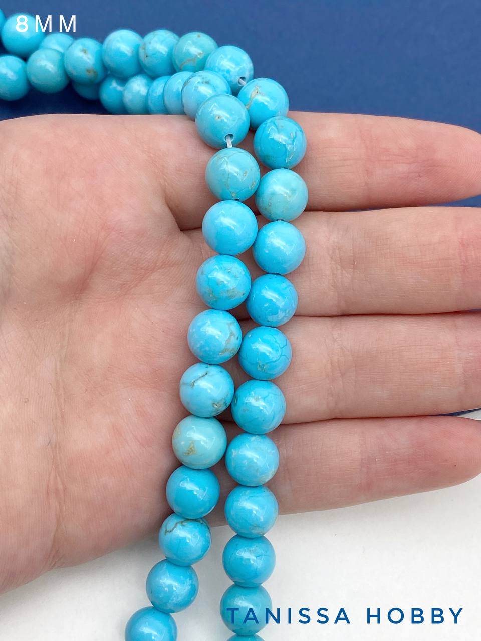 Магнезит тонированный, бирюза имитация, бусины 8мм, нить, Б213
