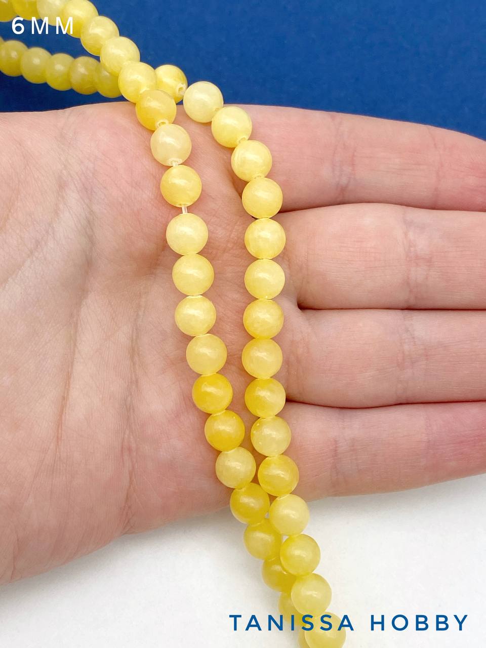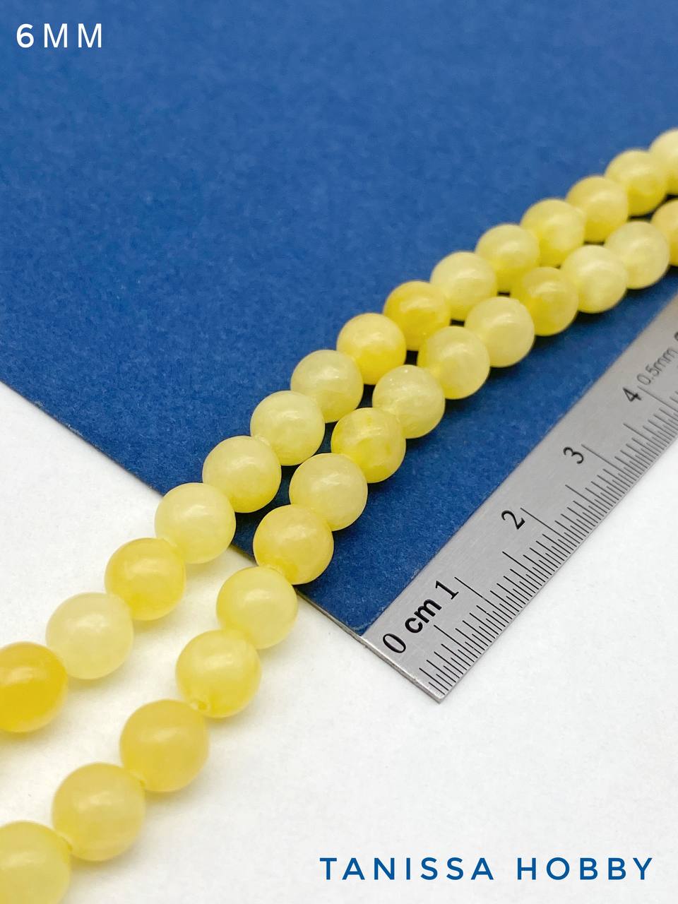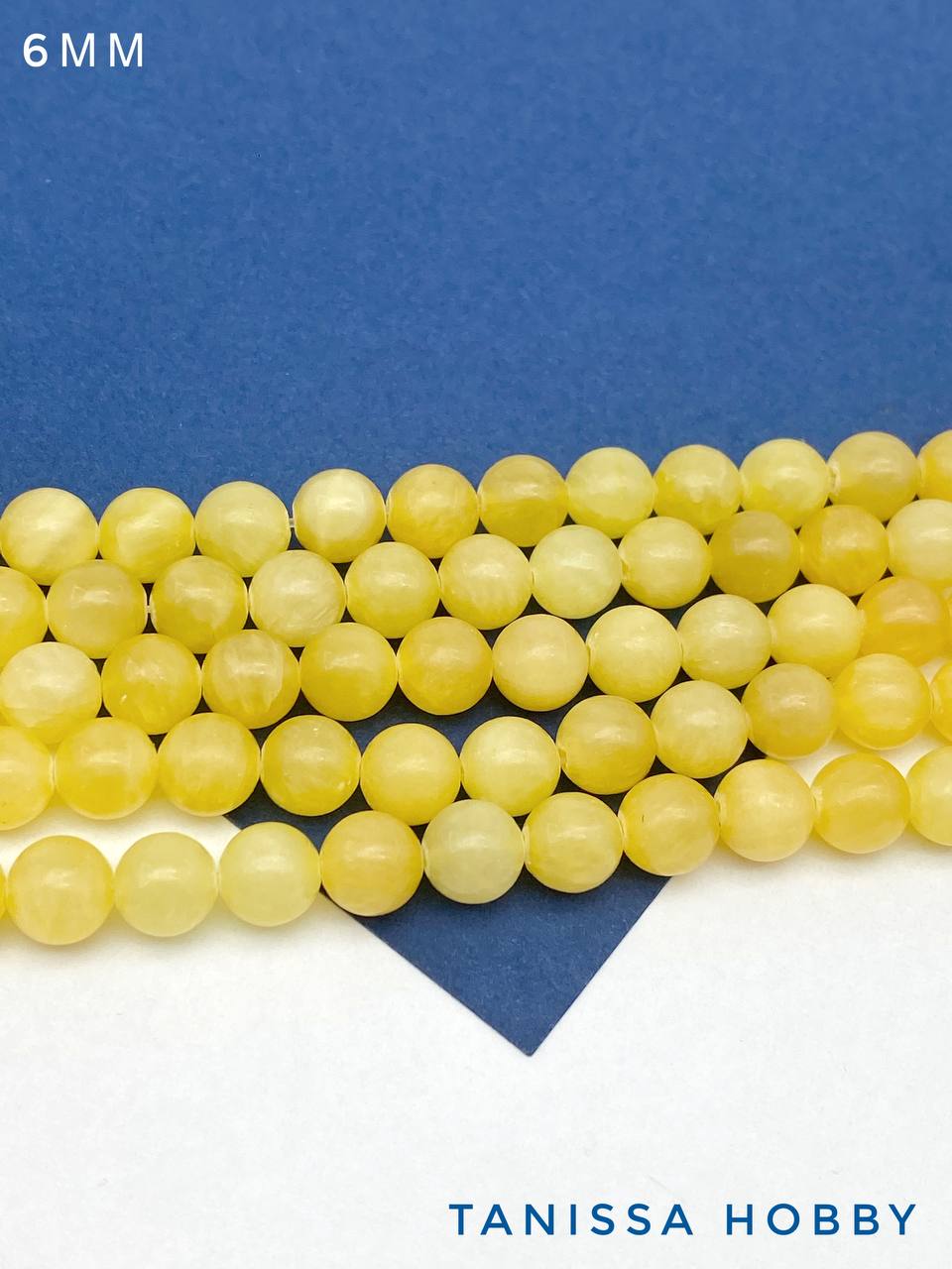 Желтый нефрит, бусины круглые 6мм, нить, Б111