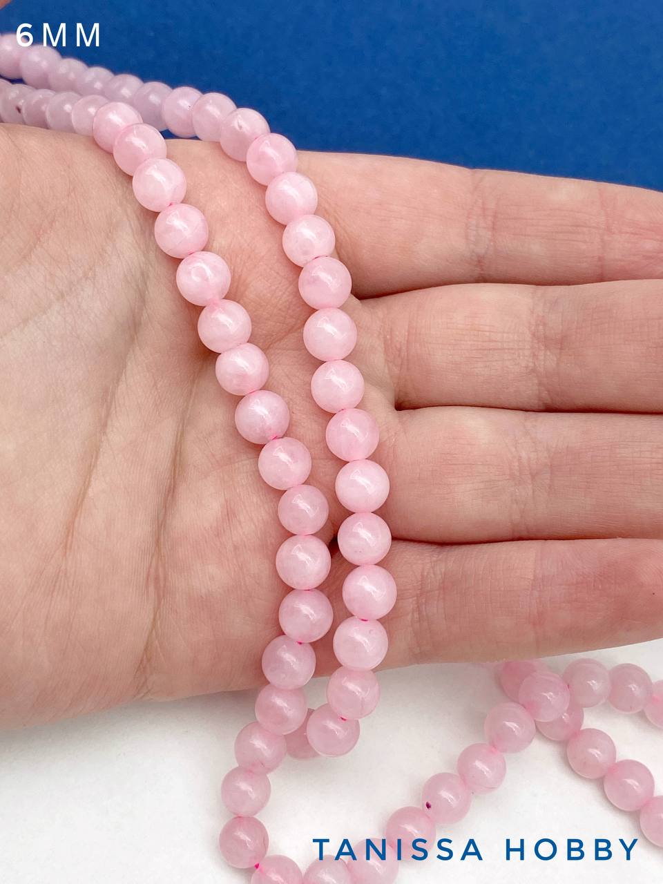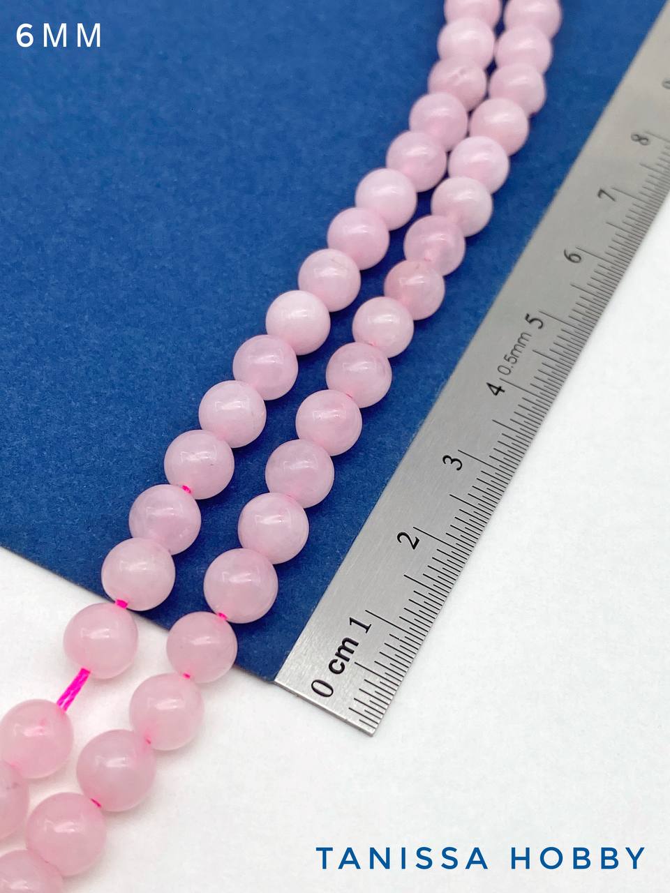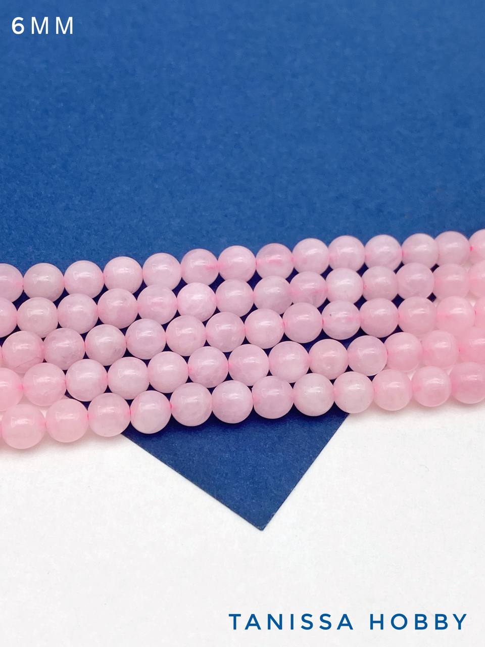 Розовый кварц яркий, бусины круглые 6мм, нить, Б254