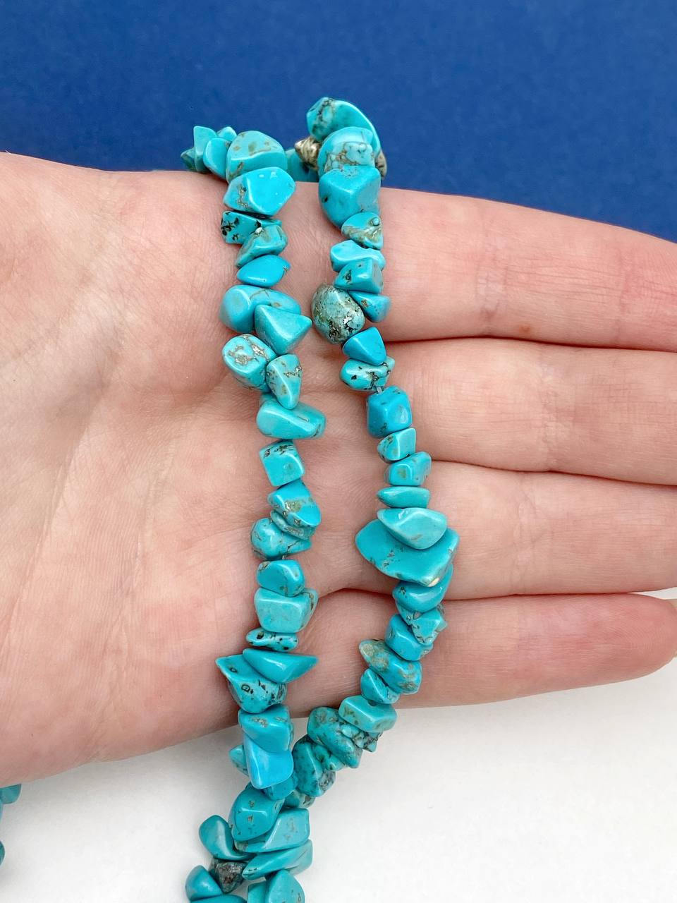 -Турквенит, бирюза имитация, крошка, галтовка 5-10мм, 1/2 нити (38см), Б106