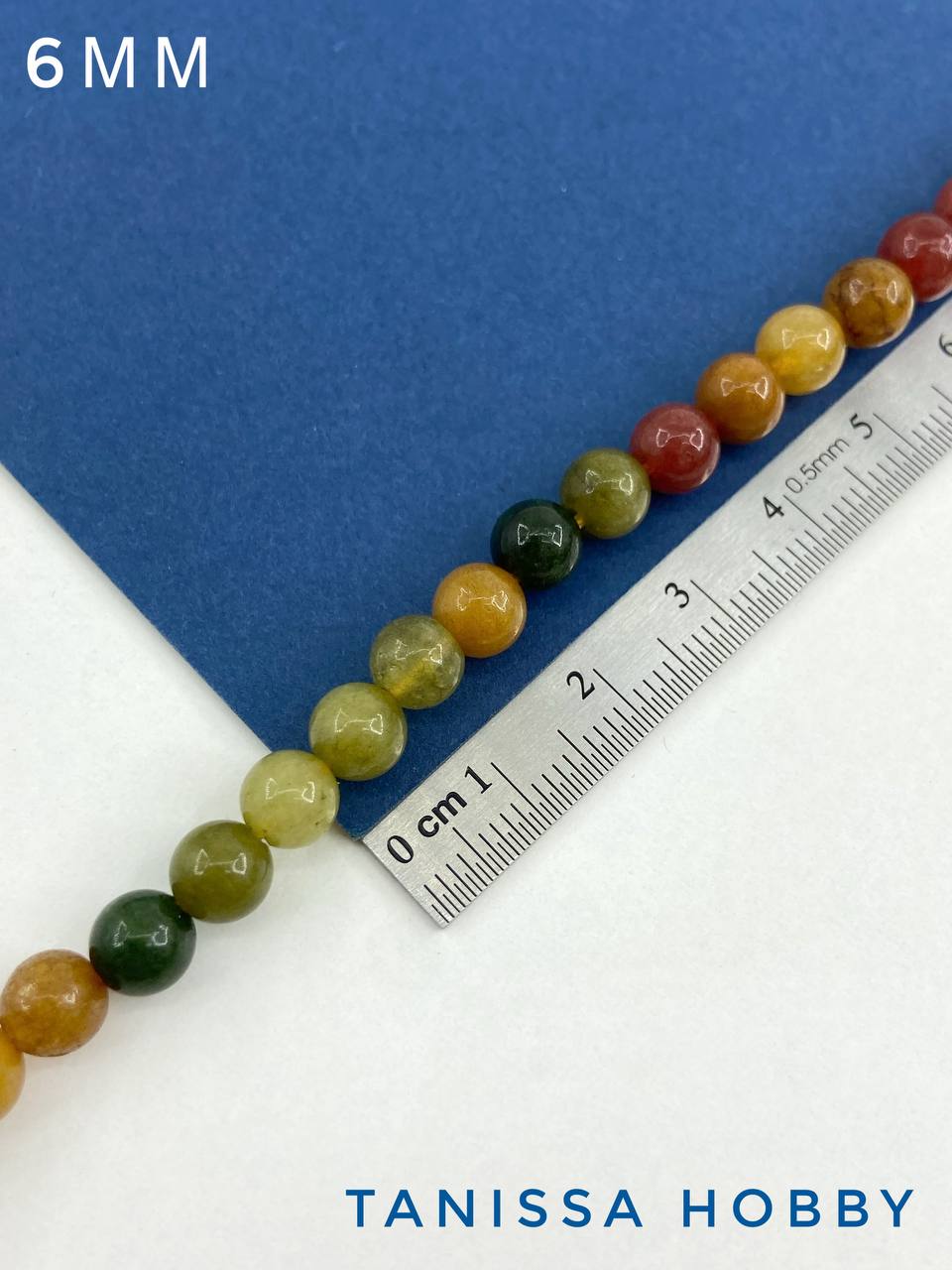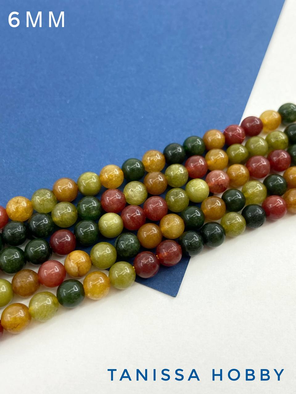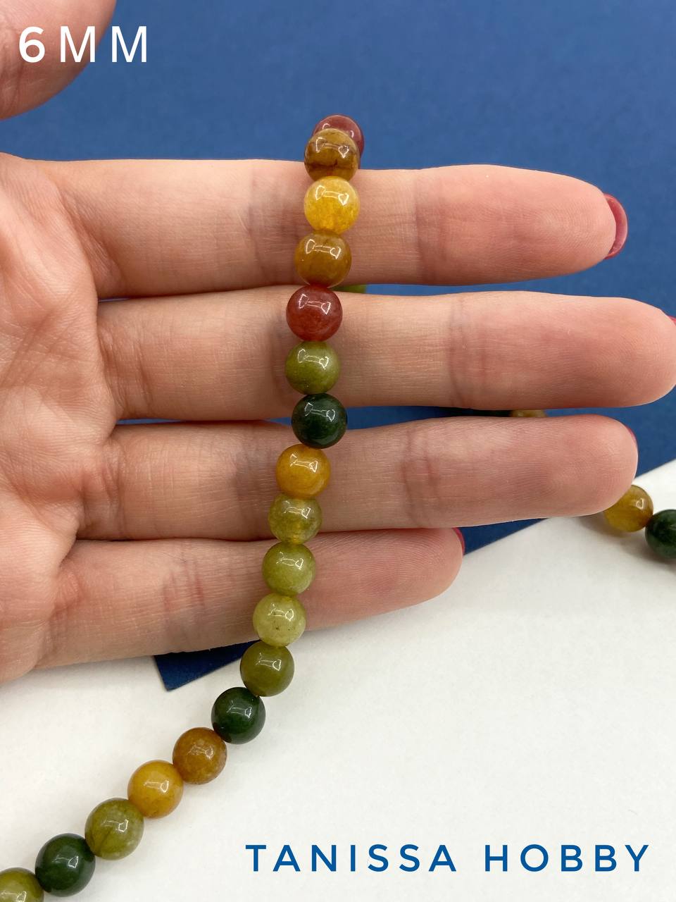 Агат, осенний зеленый бордовый микс, бусины круглые 6мм, нить, Б144