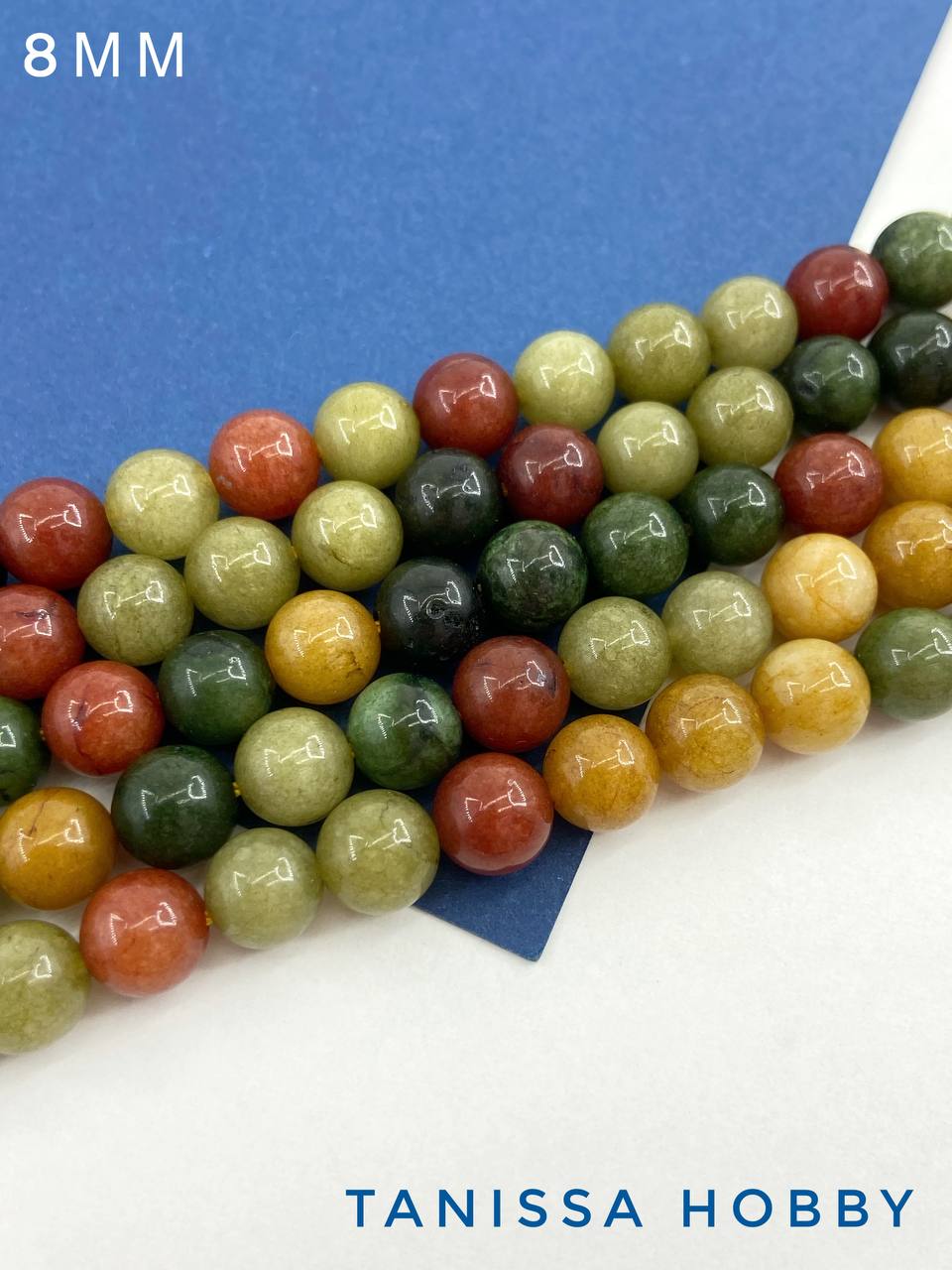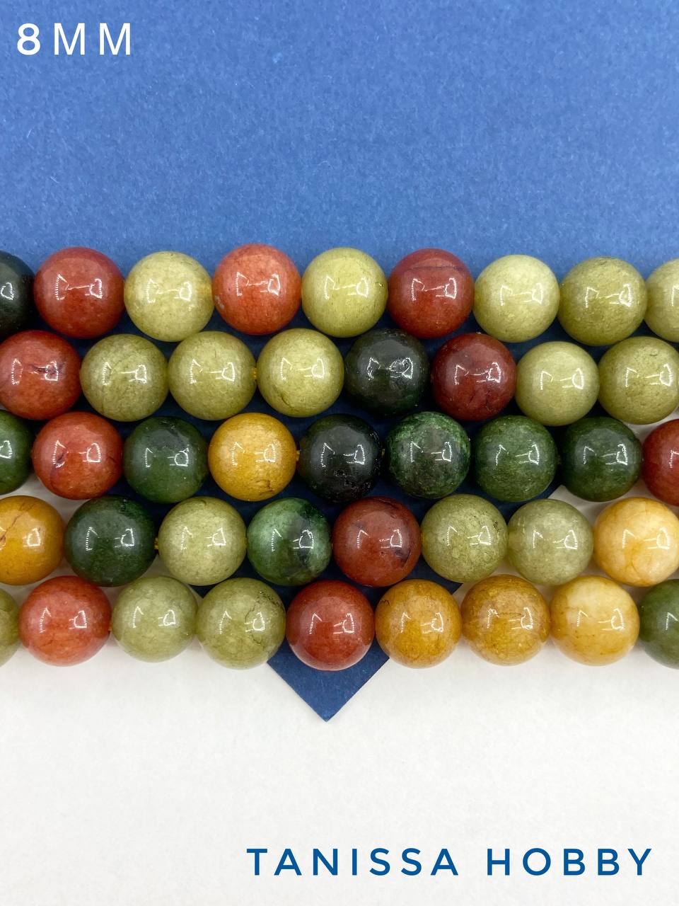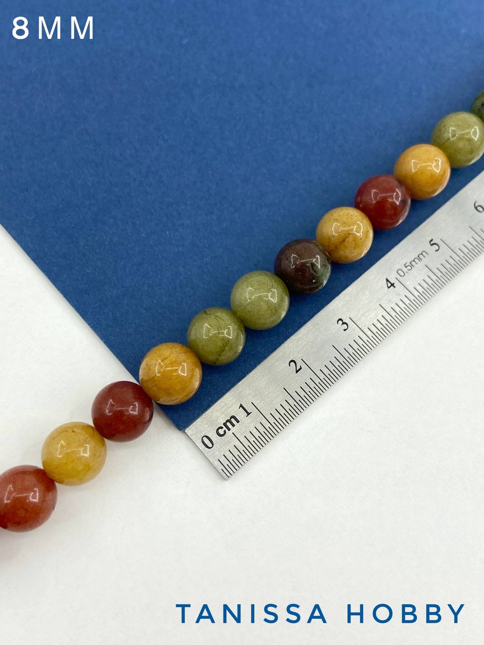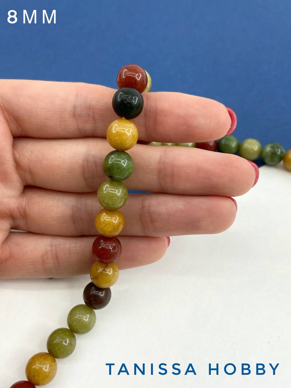 Агат, осенний зеленый бордовый микс, бусины круглые 8мм, нить, Б145