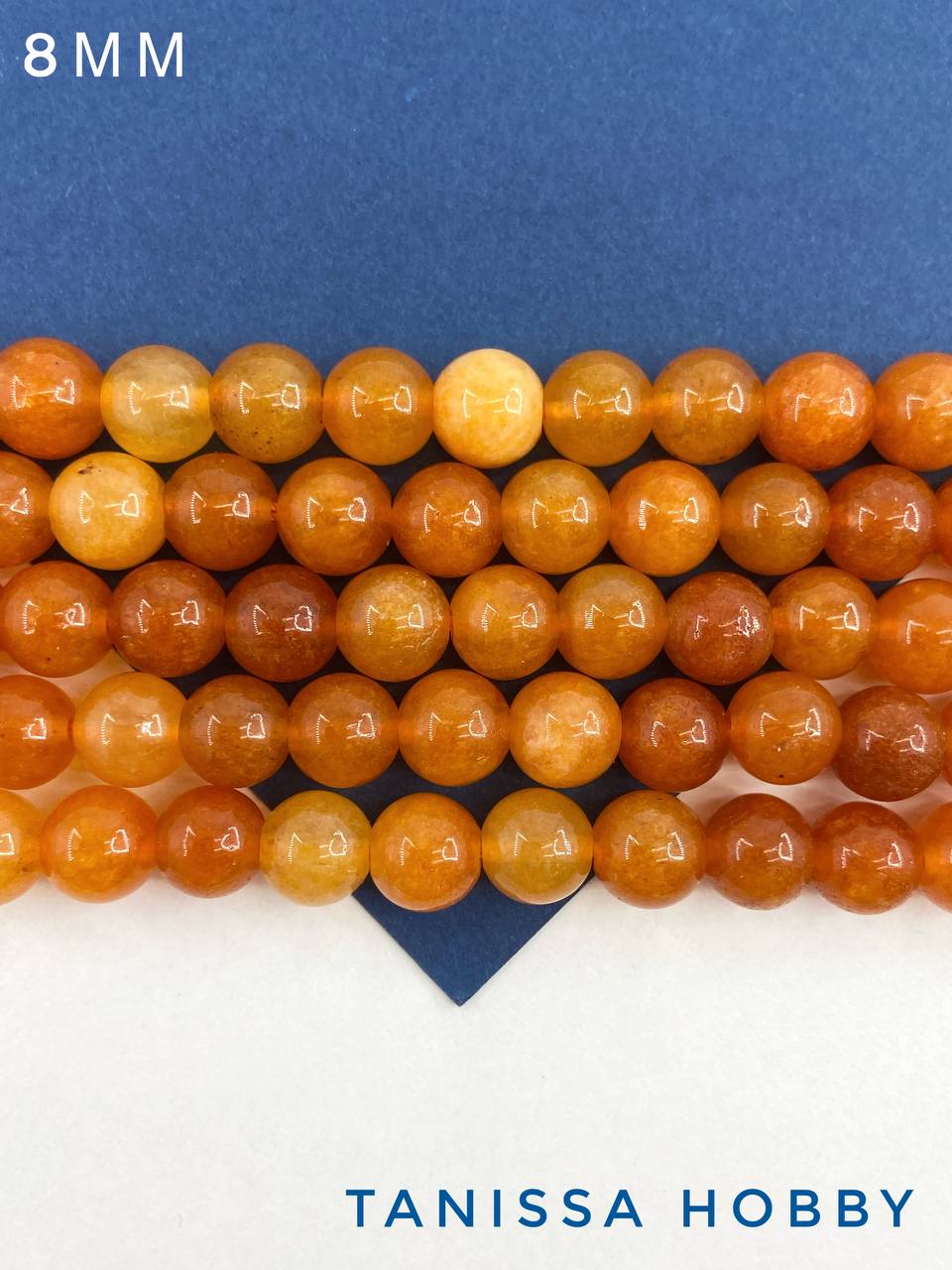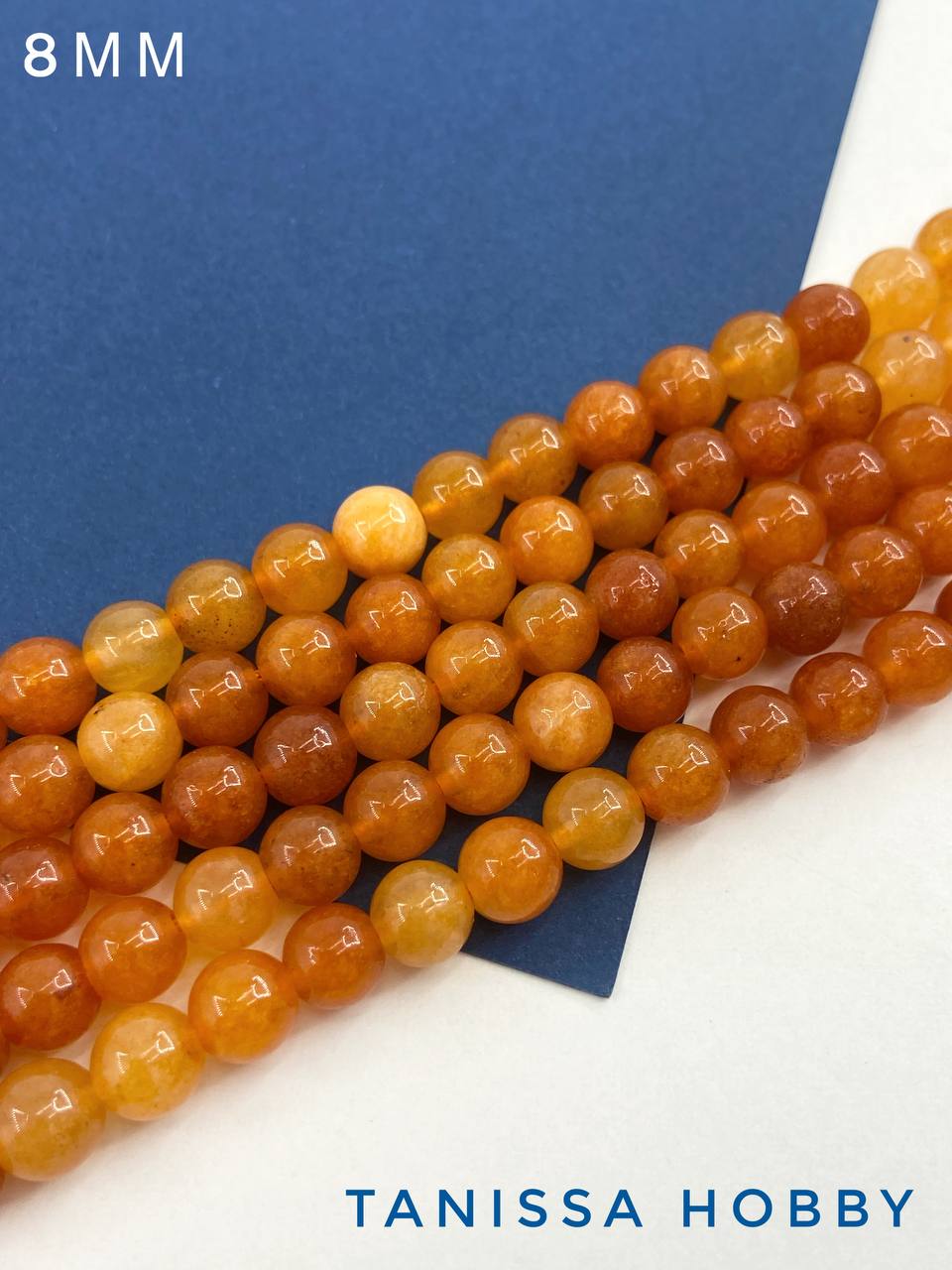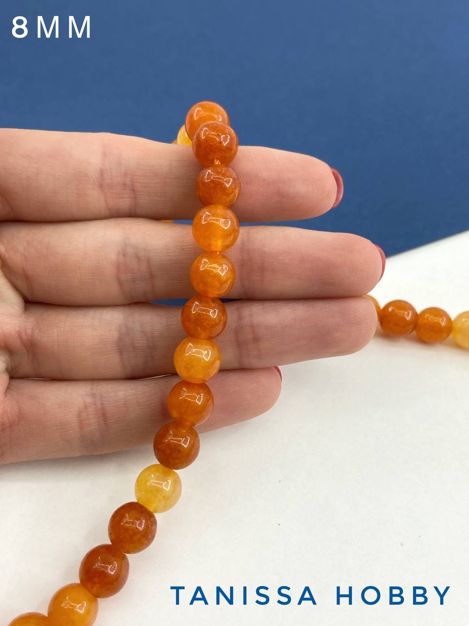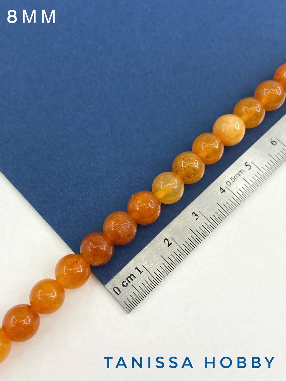 Агат оранжевый, бусины круглые 8мм, нить, Б147