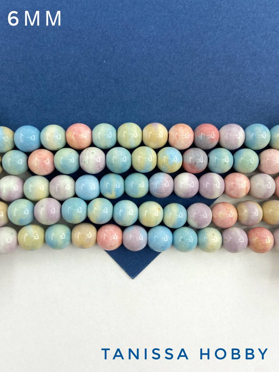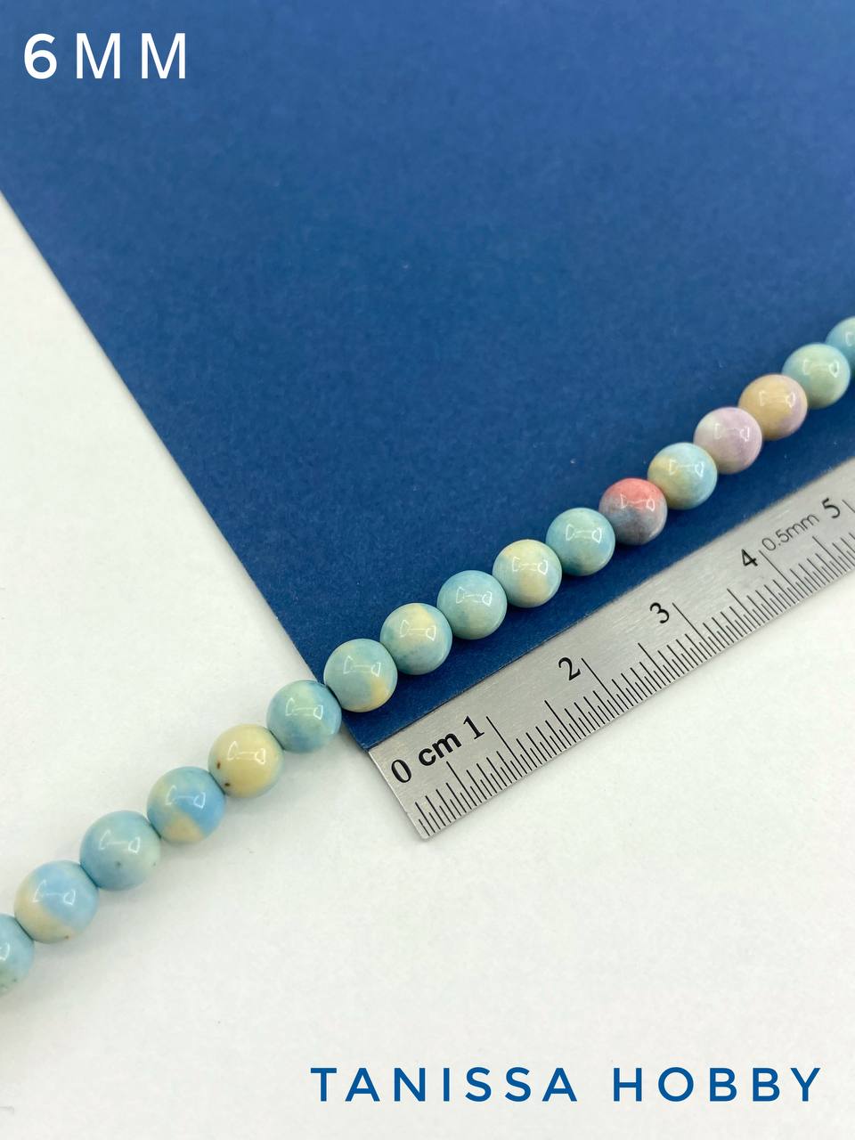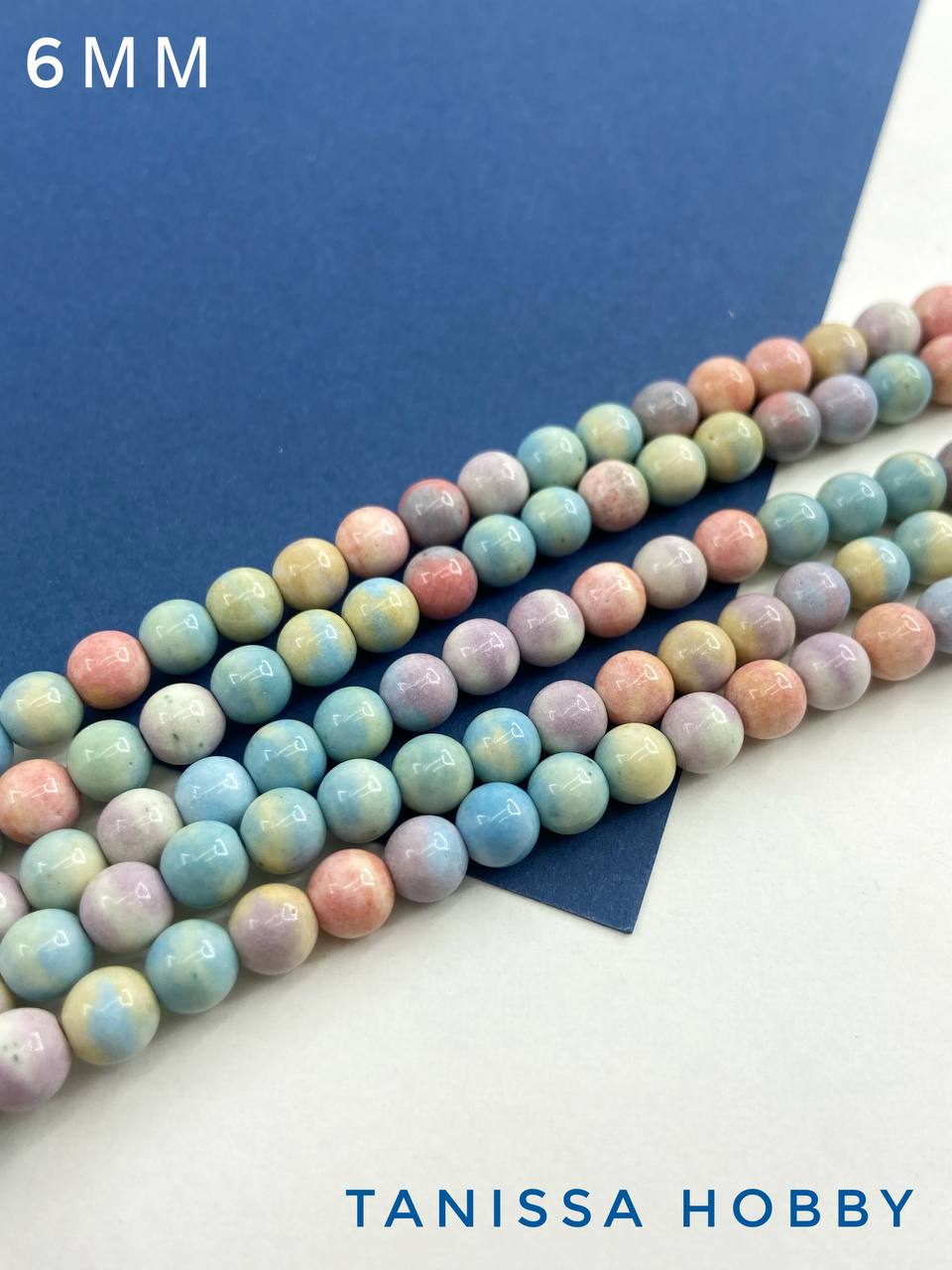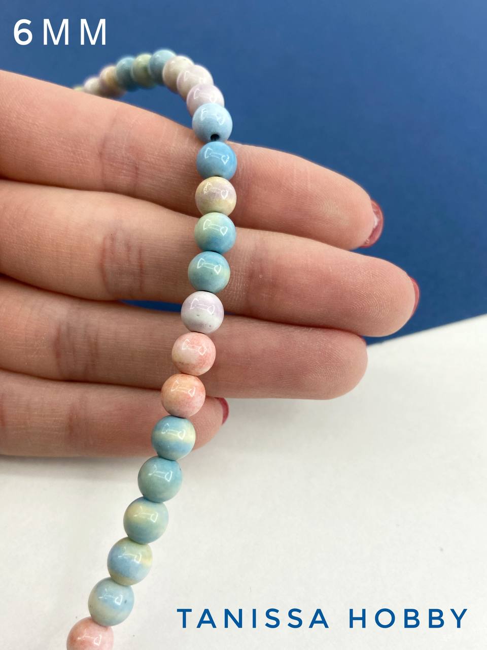 Агат, пастельный микс, бусины круглые 6мм, нить, Б222