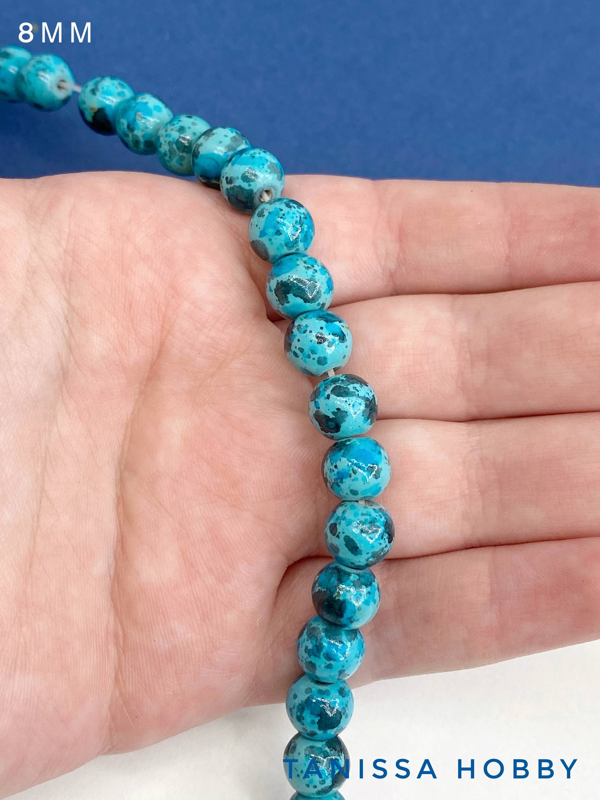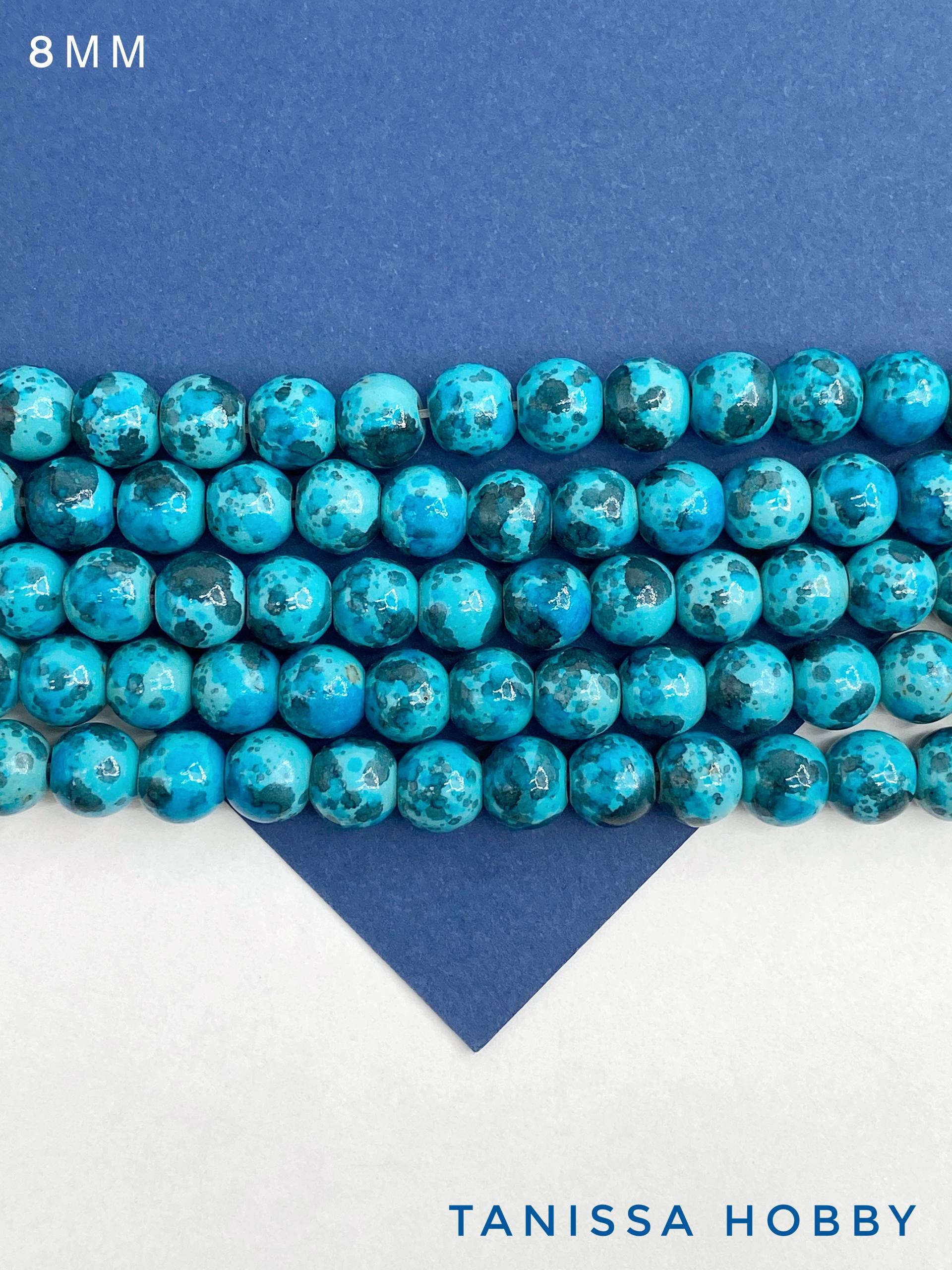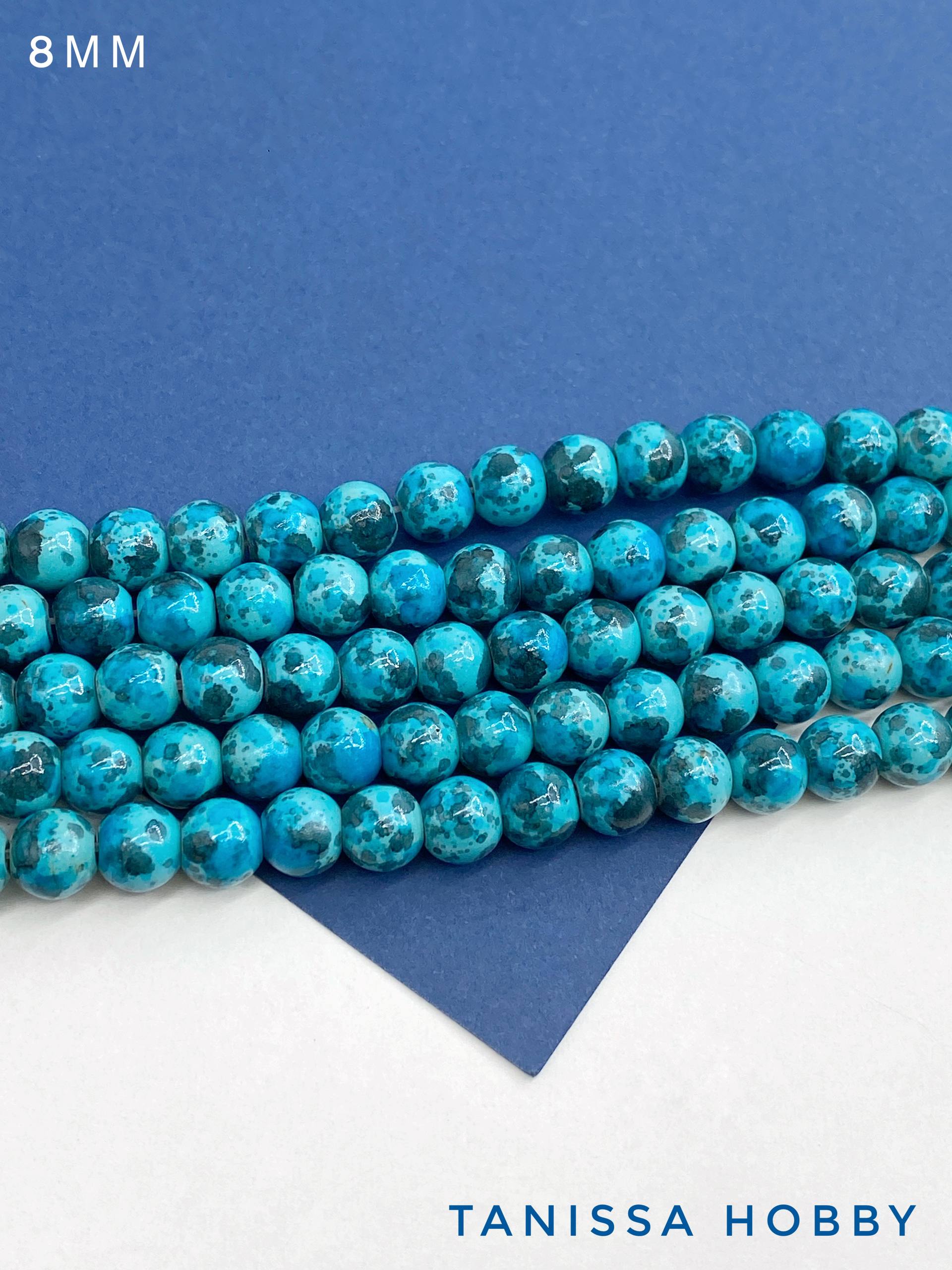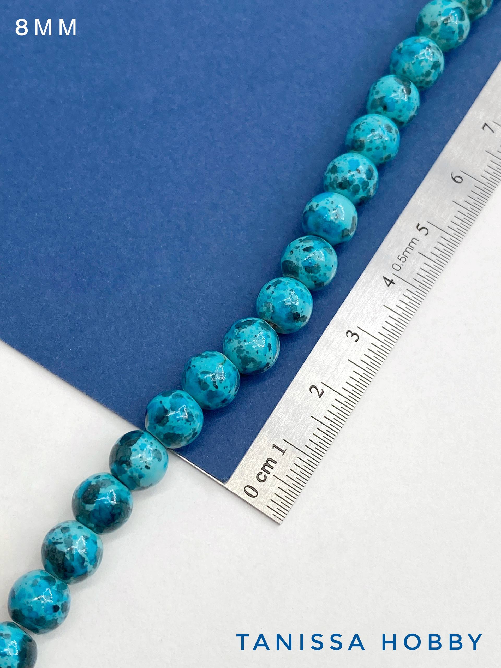 Бирюза синтетическая, бусины 8мм, голубой, нить, Б228