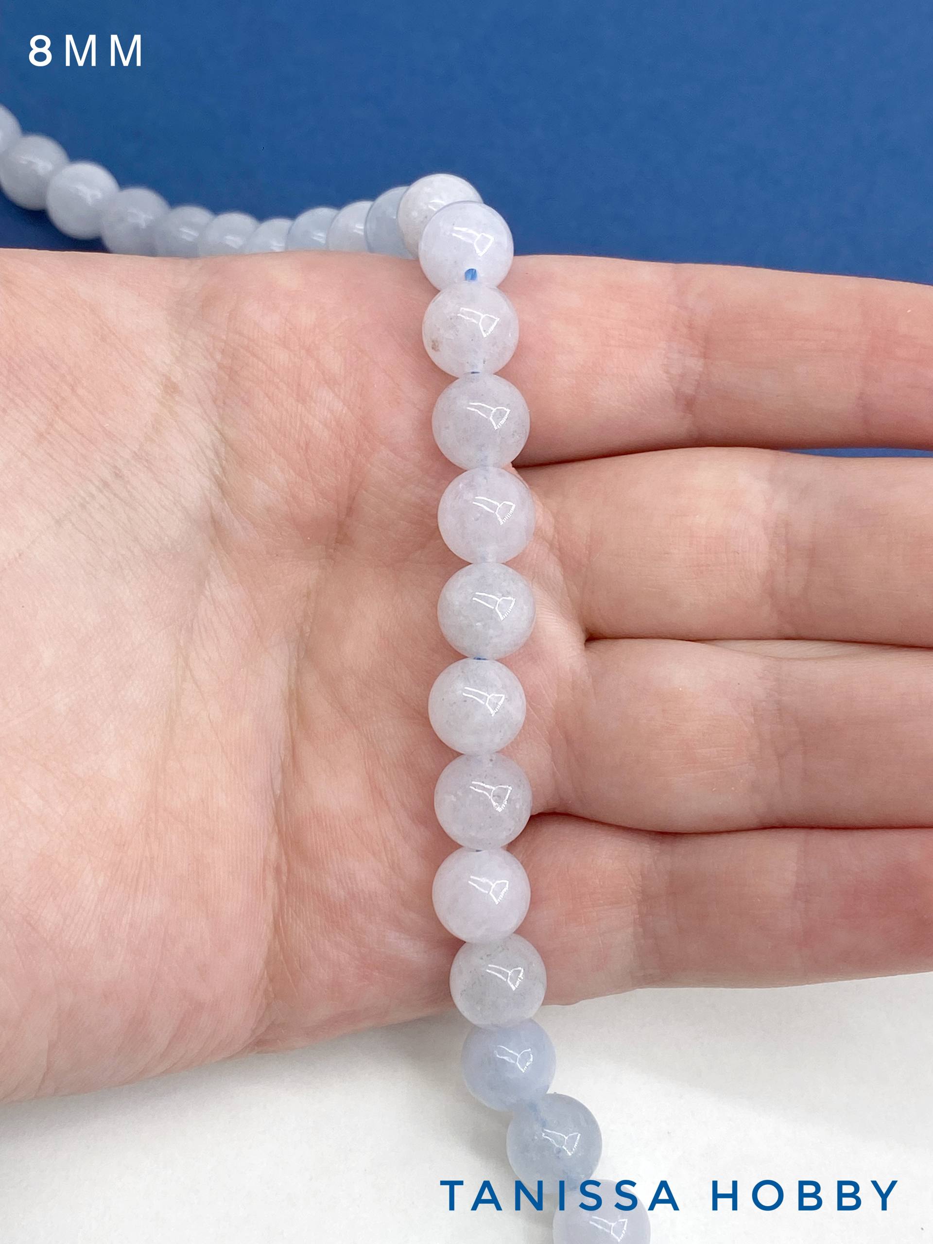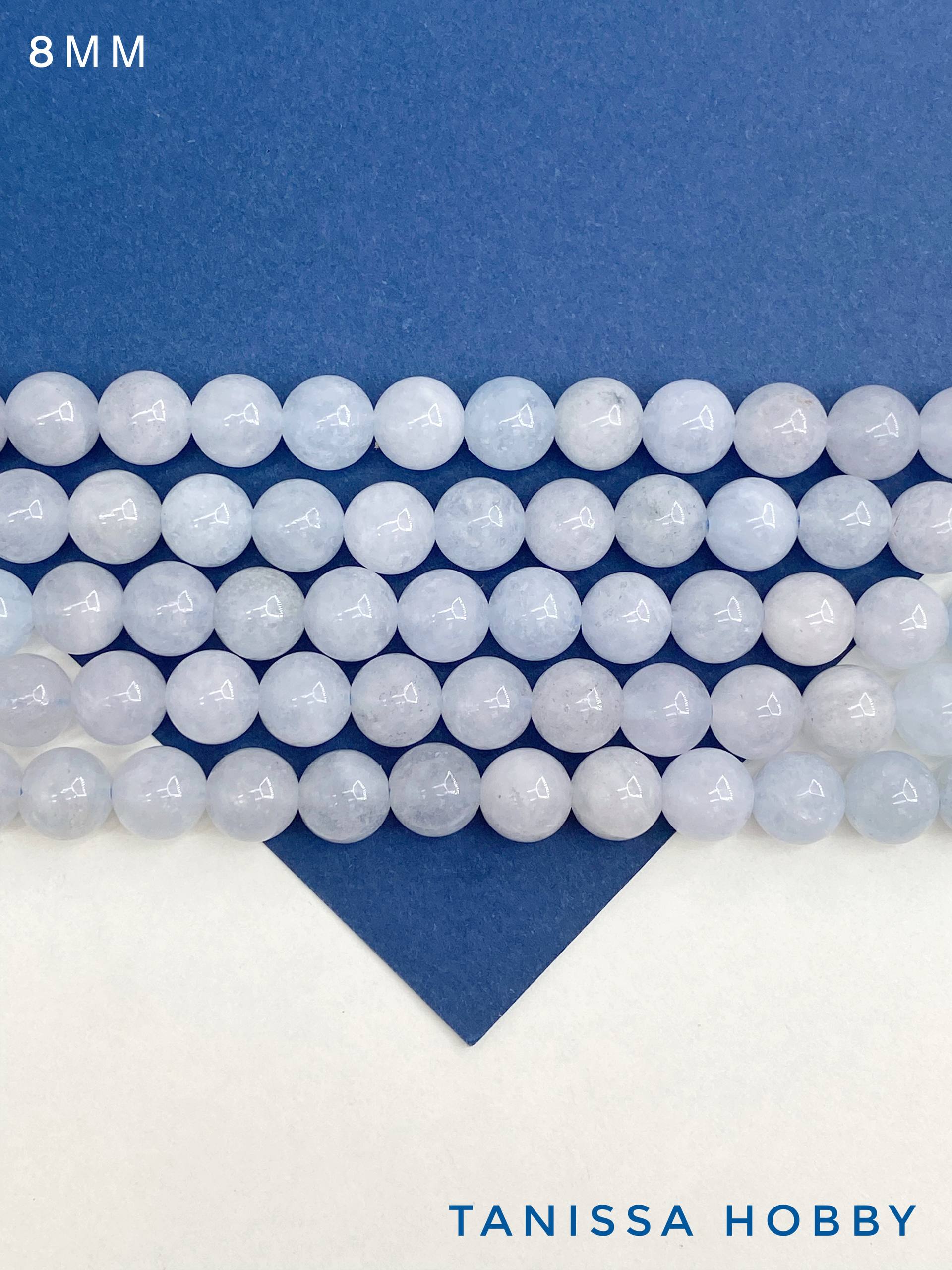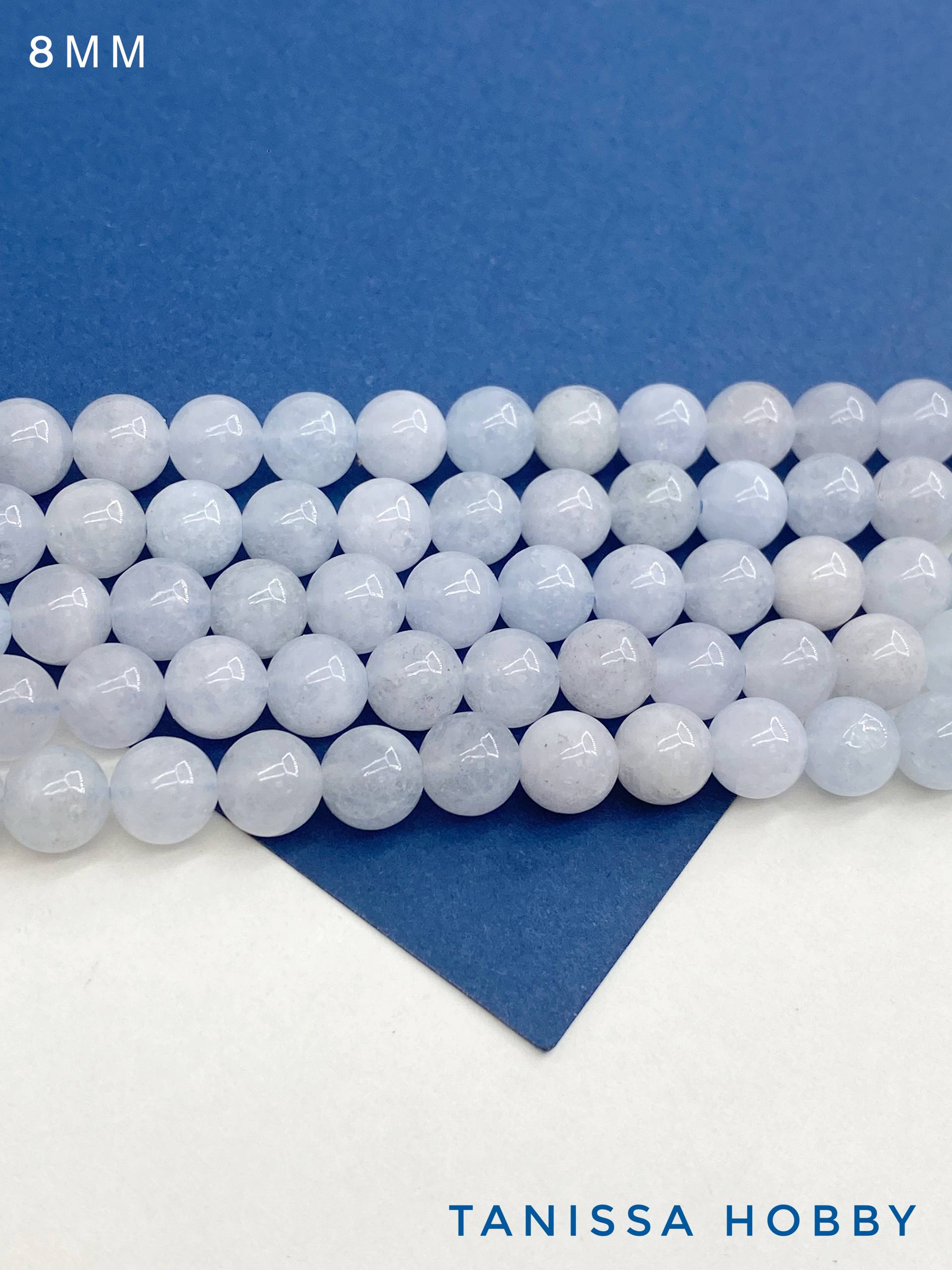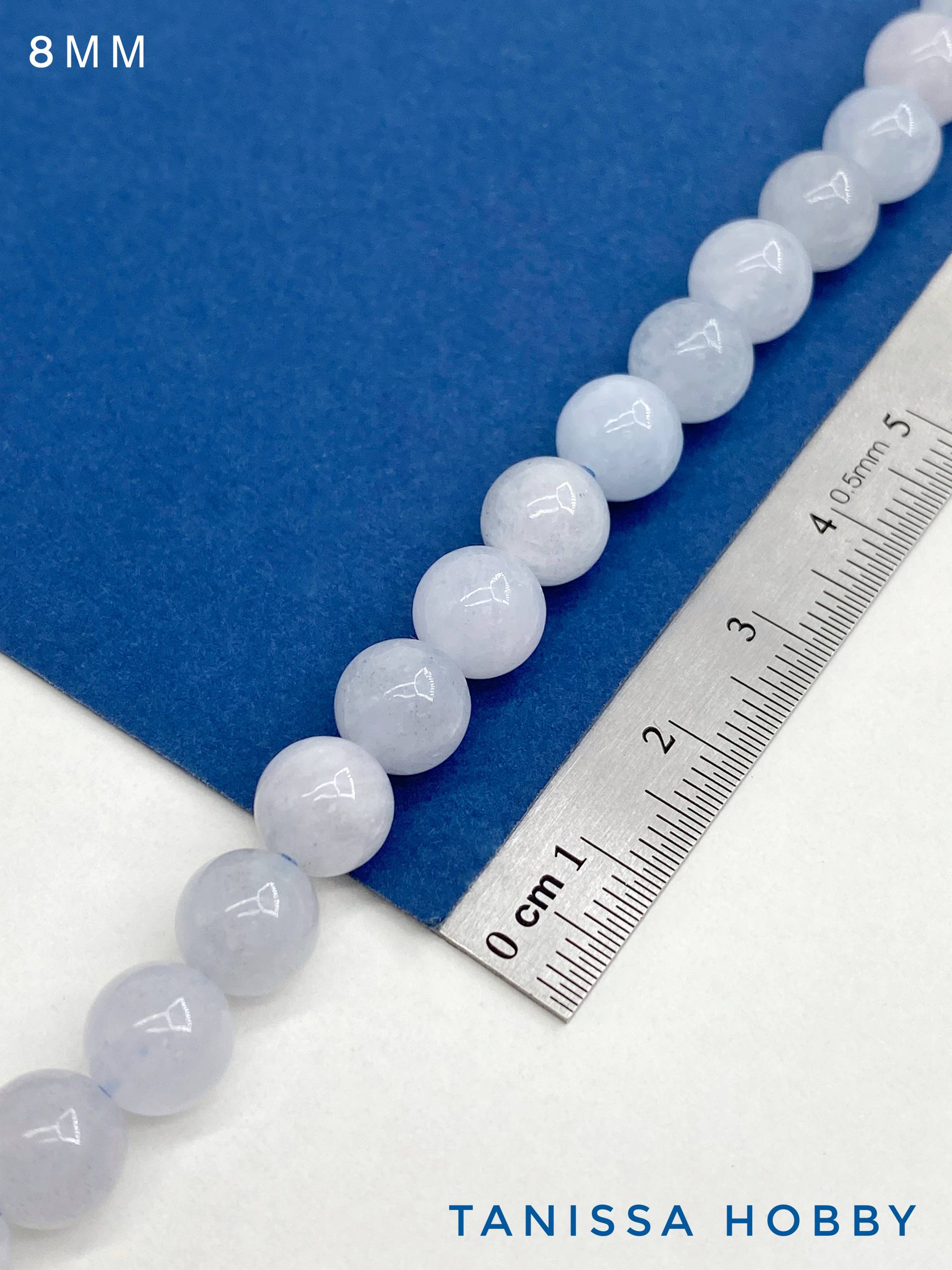 Светло- голубой халцедон, бусины круглые 8 - 8,5мм, нить, Б182