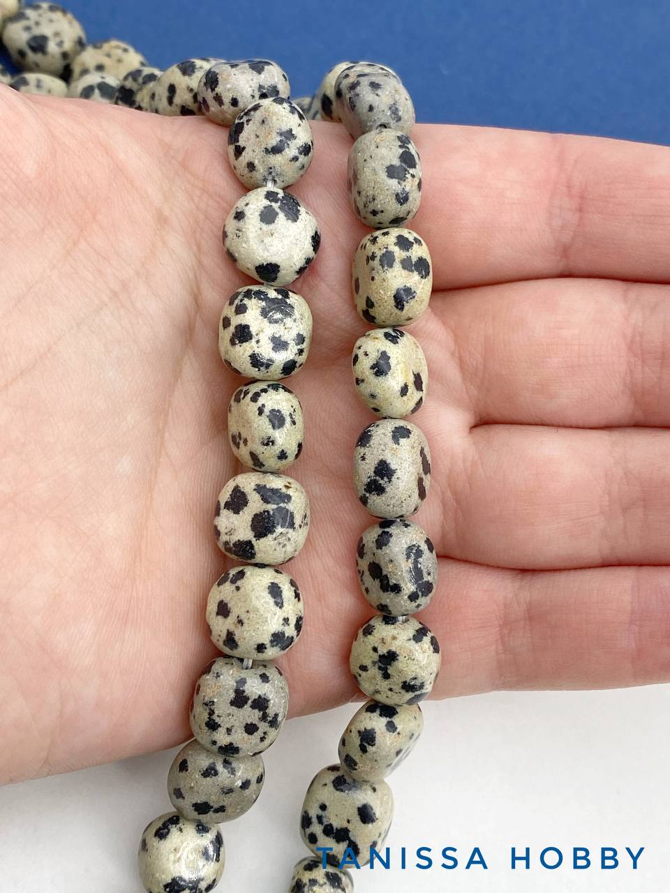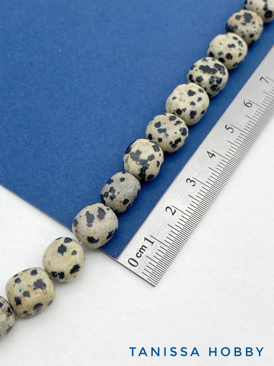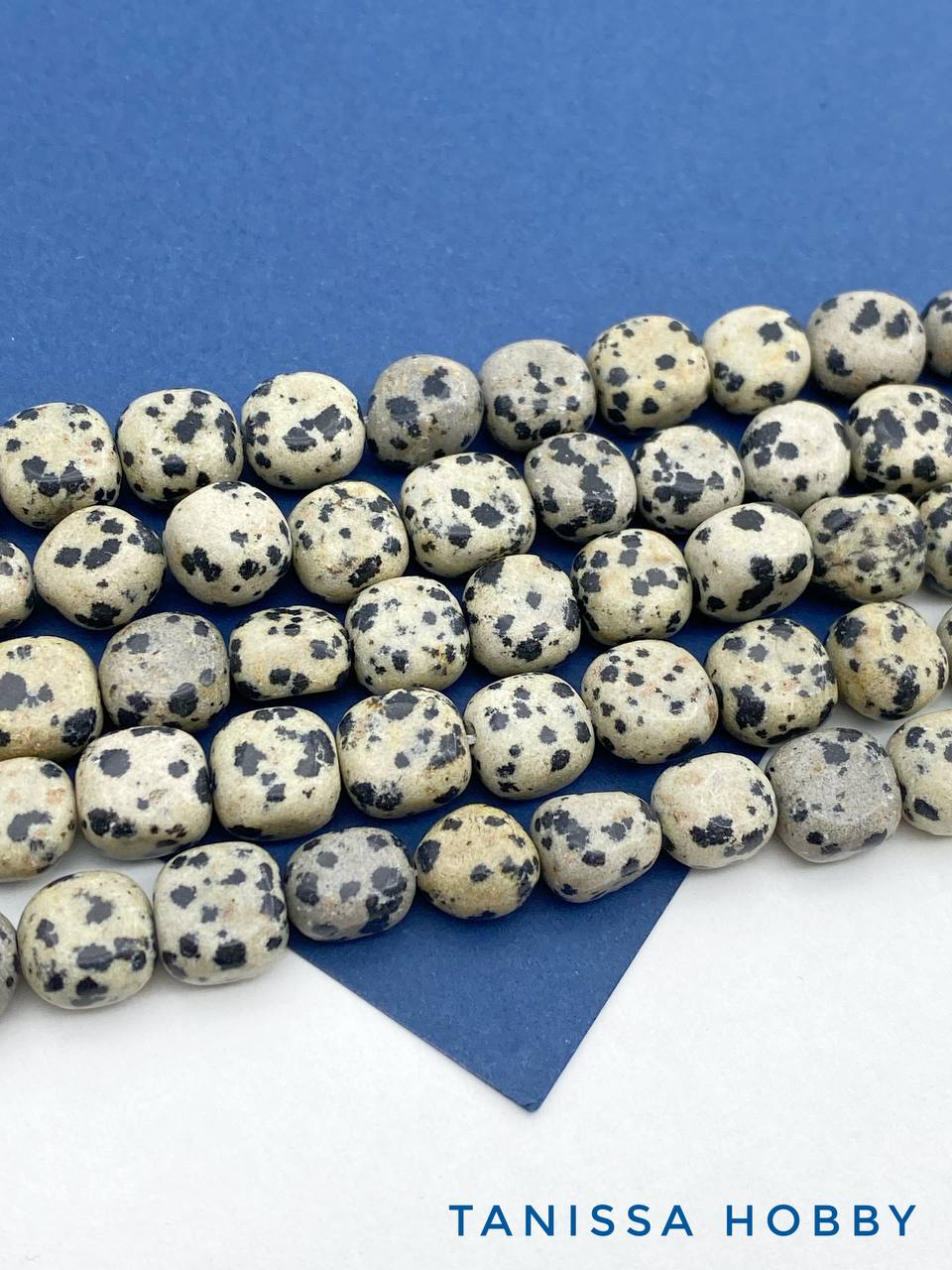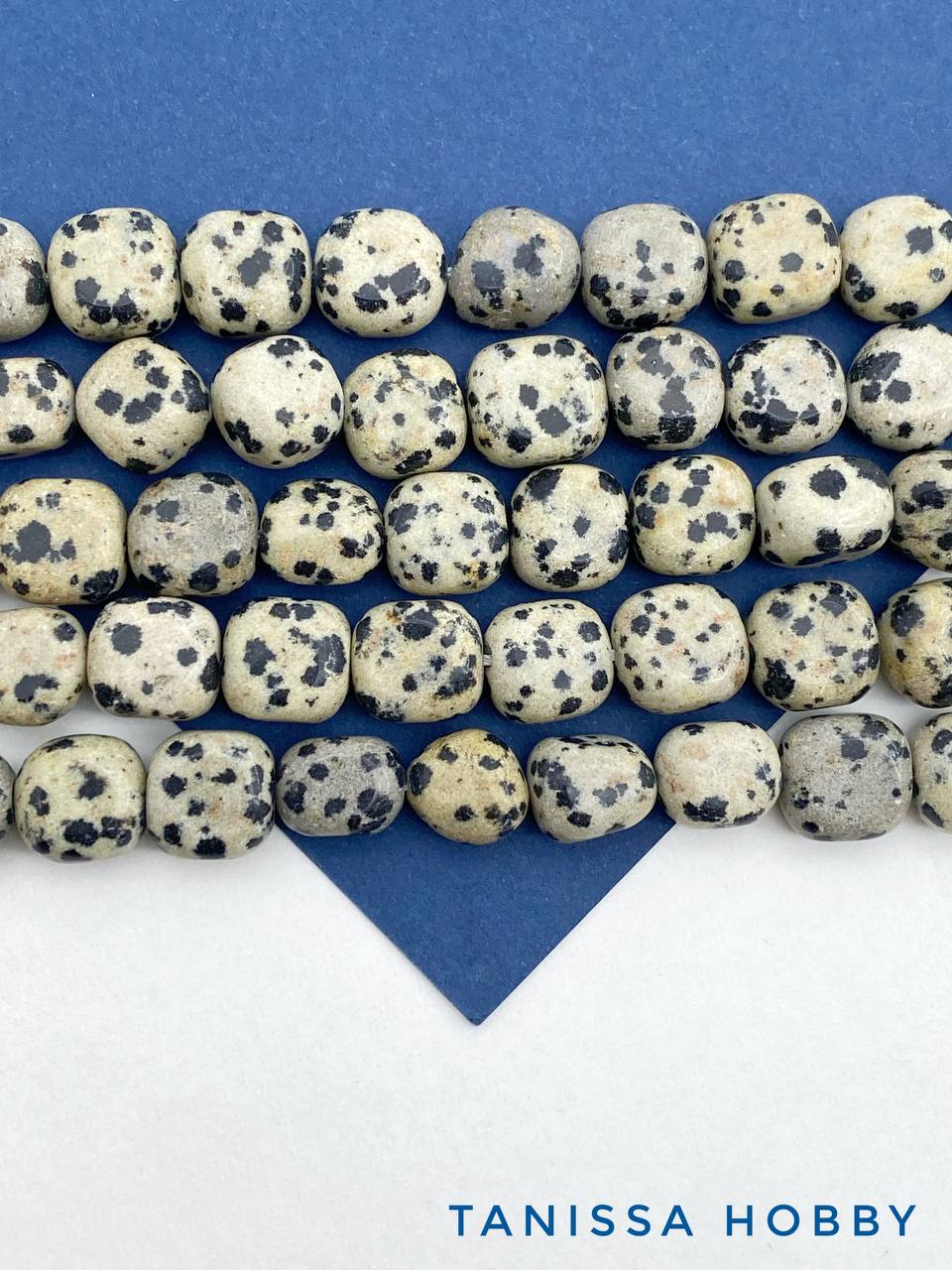 Яшма далматин, бусины галтовка квадрат, 9-10мм, нить, Б142