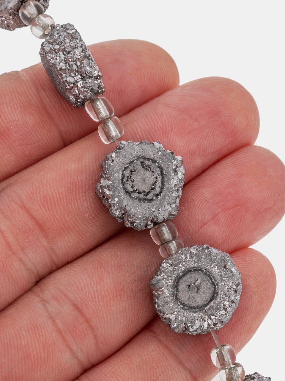 -Бусина друза агата, серебро, 11-15мм, штука, Б336