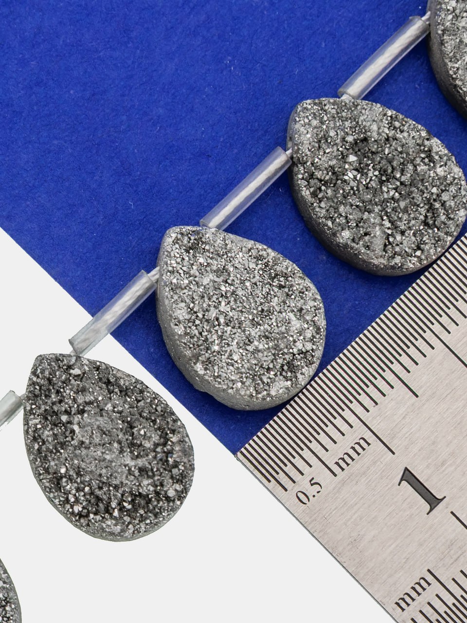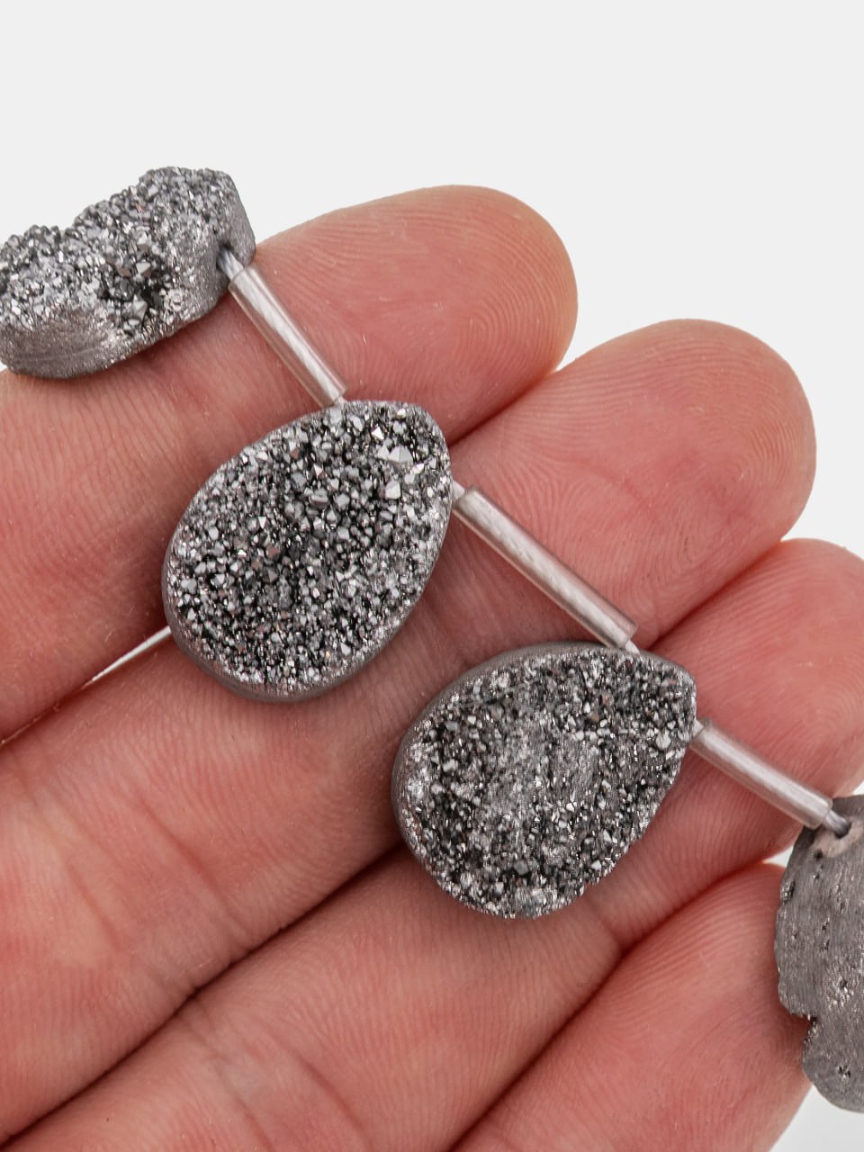 -Бусина подвеска капля, друза кварца, серебро, 17-19мм, штука, Б125