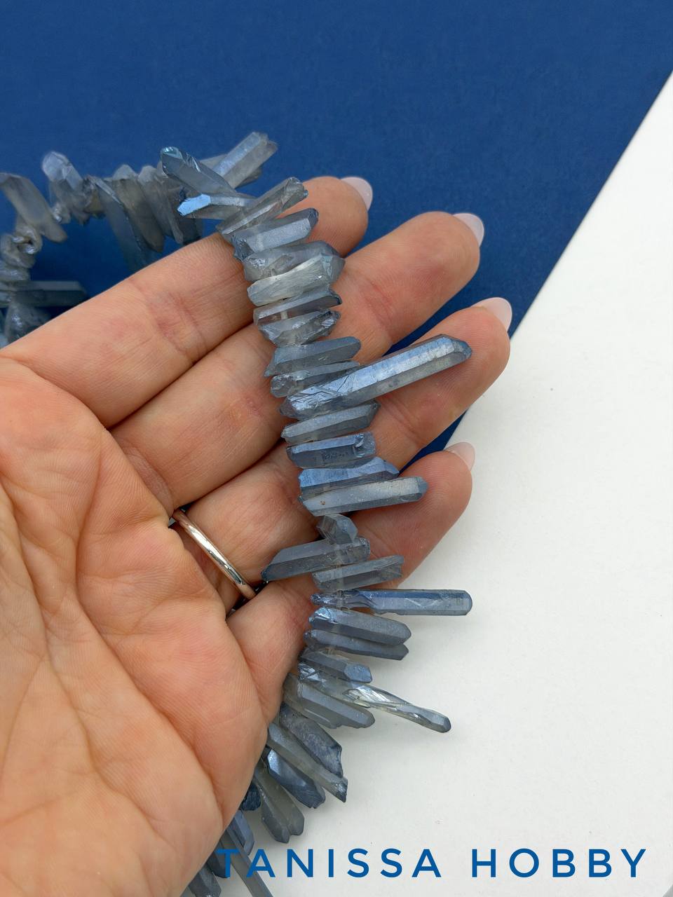 Тонированный кварц, серый голубой, кристалл 14-30мм, штука, Б036