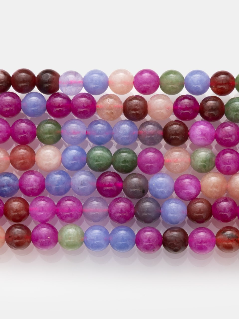 -Кварц тонированный, цветной микс, малиновый, голубой, 6мм, нить, Б354