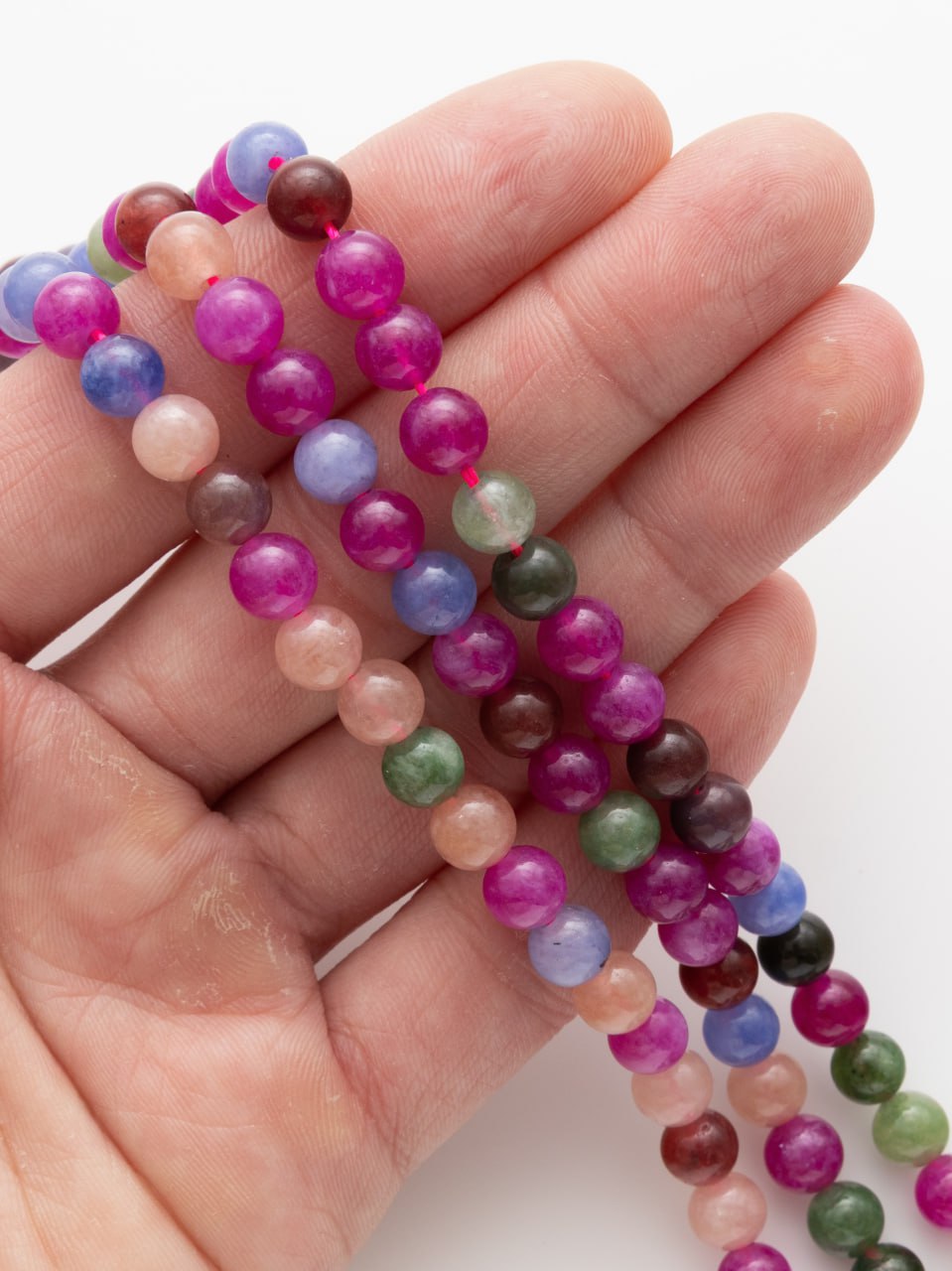 • Кварц тонированный, цветной микс, розовый, зеленый, серый, синий, 8мм, нить, Б363