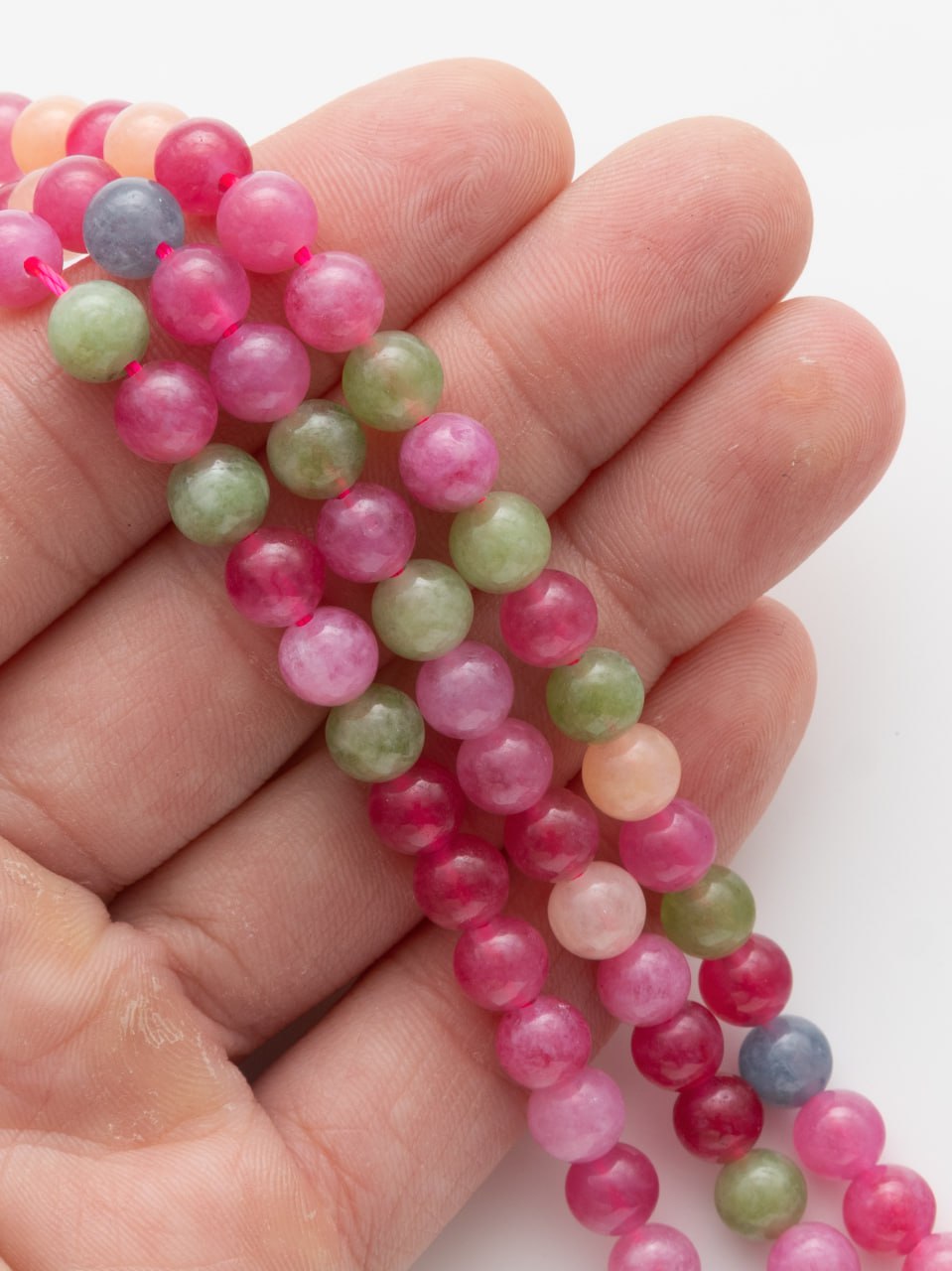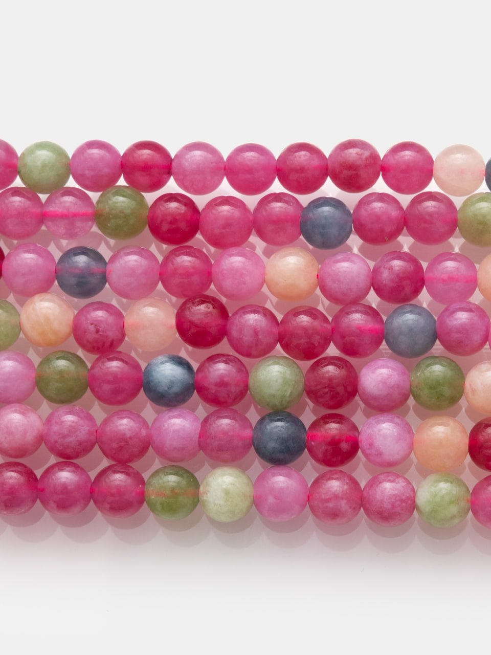 • Кварц тонированный, цветной микс, розовый, зеленый, голубой, 6мм, нить, Б358