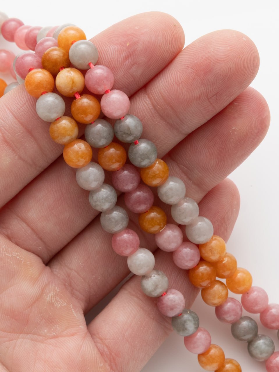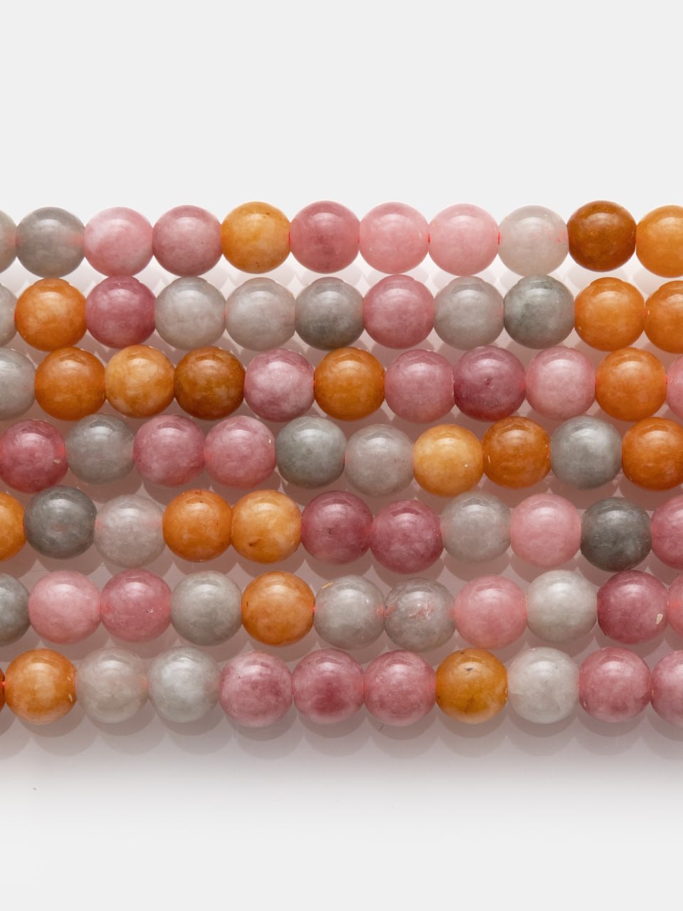 -Кварц тонированный, цветной микс, розовый, серый, оранжевый, 6мм, нить, Б360