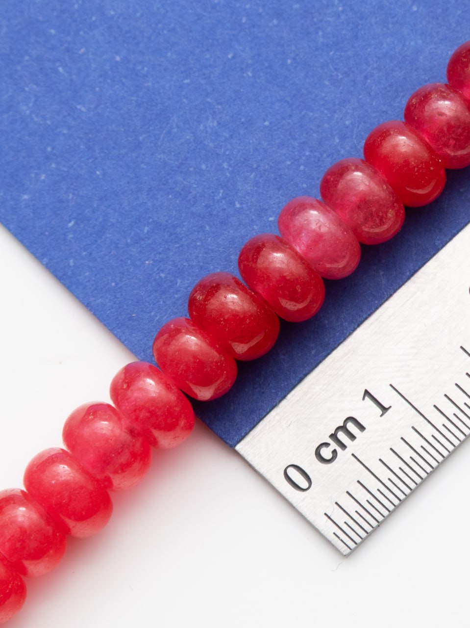 Кварц тонированный, бусины кукуруза рондели, малиновый красный, 4х7мм, 1/2 нити, Б368