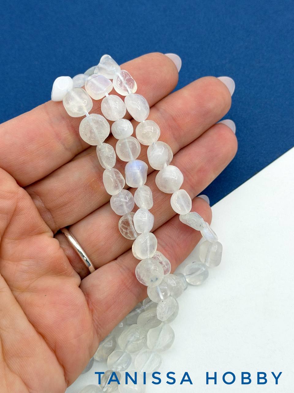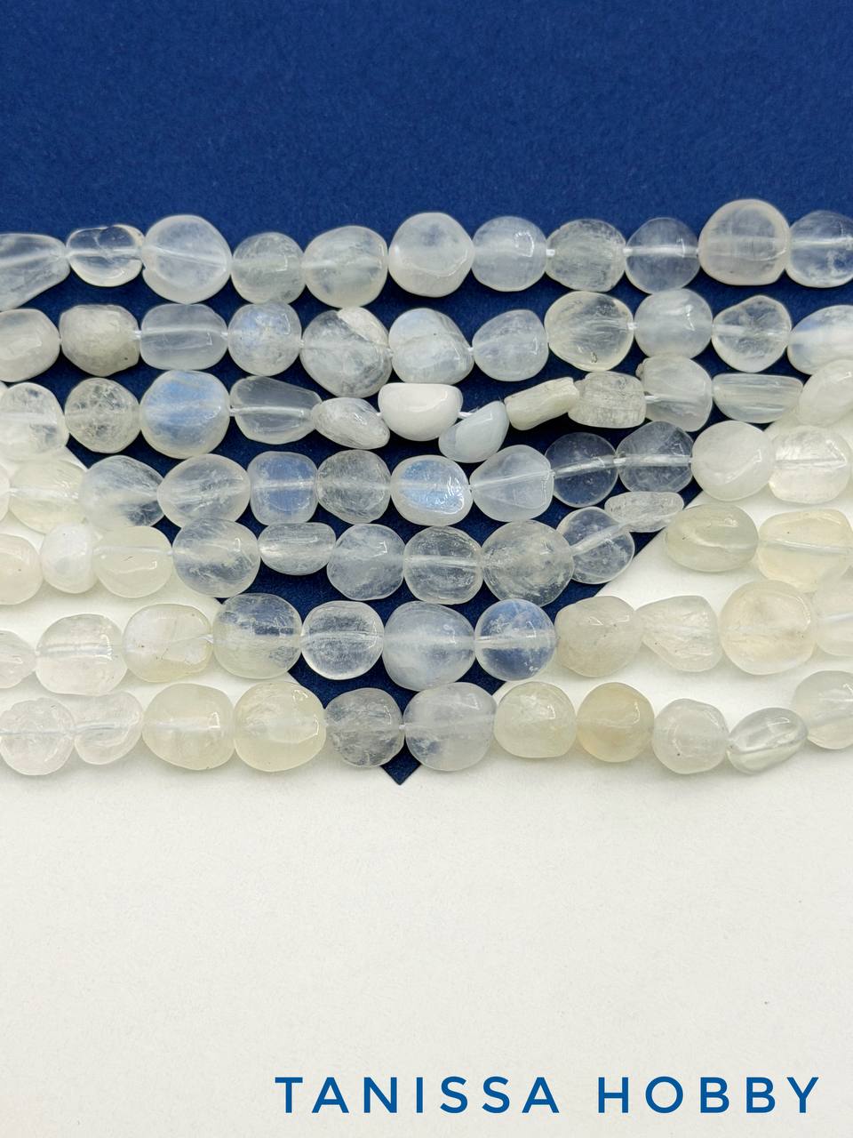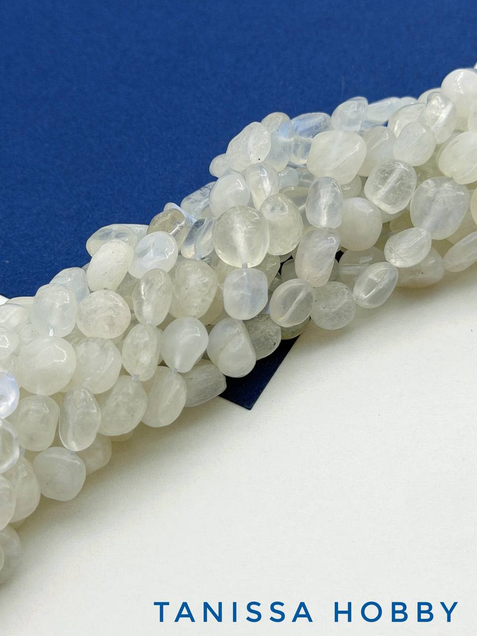 -Лунный камень бусины галтовка овал, 8-10мм, нить, Б319